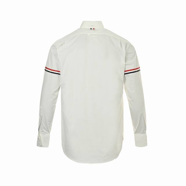 The body is made of custom 16S double yarn Oxford, the buttons are made of precious shell buttons, the garment is washed and slightly wrinkled, the classic three-color ribbon is widened, the difficulty of workmanship lies in the ribbon, the custom-woven Tb three-color tooth edge ribbon is accurately called a hat band, the price P is more than 5 times that of ordinary ribbons, and it needs professional machines to splice it. The quality details are perfect. Our shirt processing factory P has always only produced export orders, so the plate making process and workmanship are of export quality, and have always been well-known.