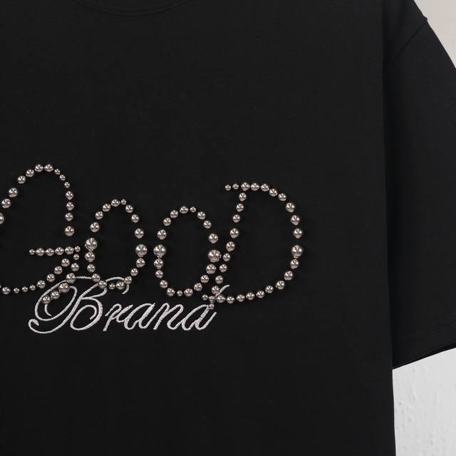 Top quality, rest assured, comparison with customized packaging bags. Goodbrand 25Ss pearl embroidery heavyweight short-sleeved T-shirt Yb one-to-one development. % cotton uses custom-dyed terry pure cotton upper, 320G double-strand B1134 double yarn, comfortable to the touch. Made of imported knitted needle-combed cotton, matched with 320G1*1 thread, no color difference in the same cylinder, moderate overall thickness, drape and contour, comfortable to wear! ! It is very tolerant to slightly fat body shapes, and you will lose 5 pounds instantly when you put it on! The front panel uses imported silicone thick embossed logo, and the middle space uses colored gem hot diamonds, which greatly increases the fun of the clothing and unique visual effects. This version has been repeatedly scrutinized for a long time and presents an extremely high standard of ready-to-wear clothing. The fabric surface is clean, the texture is clear, the feel is tight and stiff, and the color fastness is high, no deformation or discoloration. Customized thread accessories are matched with the version. Must-have for couples. Color: black and white Size: SML Xl