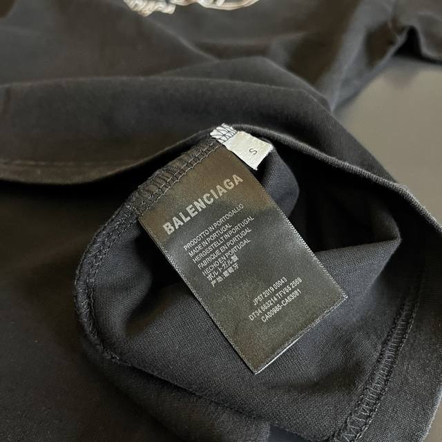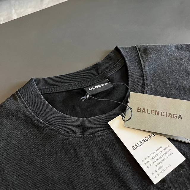 Top version Blcg Balencia Tape Series Washed Short Sleeve T-shirt