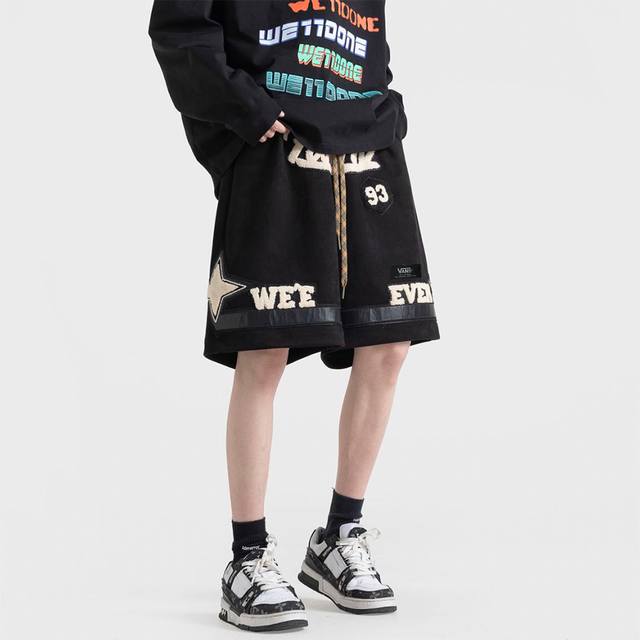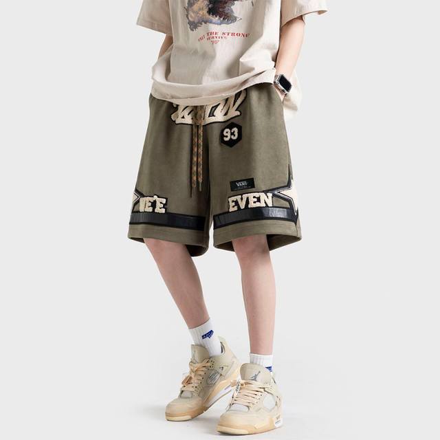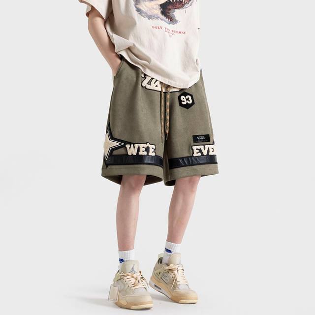 Vans Summer Overseas Edition American Retro Suede Flocked Graffiti Sportswear Shorts. Made from high-quality suede fabric, they are breathable and comfortable. The front features American street hip-hop graffiti embellishments and a personalized flocking process, making them incredibly cool. These pants are a must-have for trendy streetwear. These neutral, loose-fitting pants are versatile and can be worn by both men and women, or as a couple's pair. Colors: Black and Army Green. Sizes: M-3Xl. See Figure 9 for details.