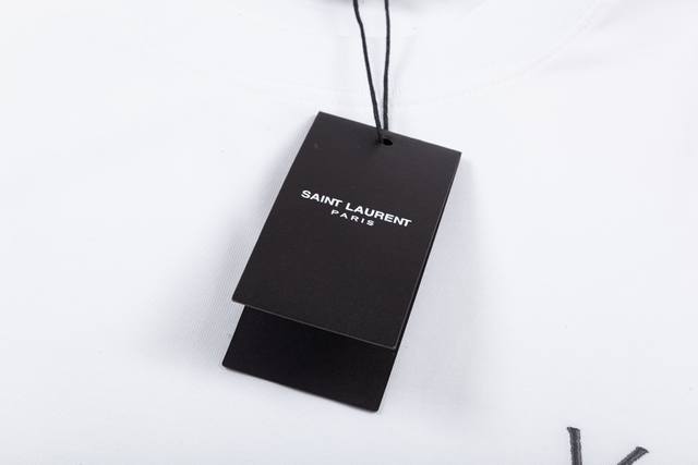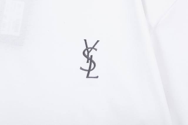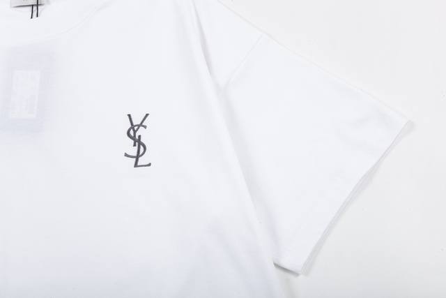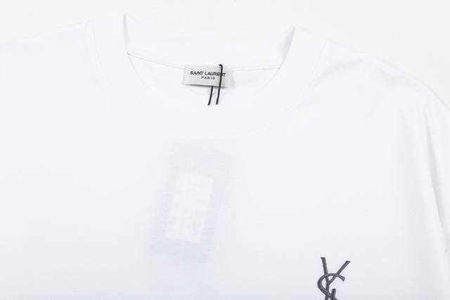 Ysl Saint Laurent logo, featuring a refined upgrade with classic small letter embroidery, inspired by the original 1980s vintage fabric. Custom-made, official short-sleeved T-shirt with 260g single-dye fabric for a comfortable feel. This spring/summer trendy and stylish design is incredibly versatile and suitable for both men and women. A must-have accessory with a hanging tag and collar. Washed wheat, complete with three labels. Color: White. Sizes: XS-L