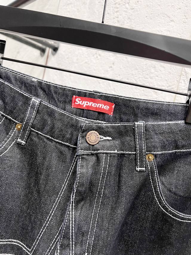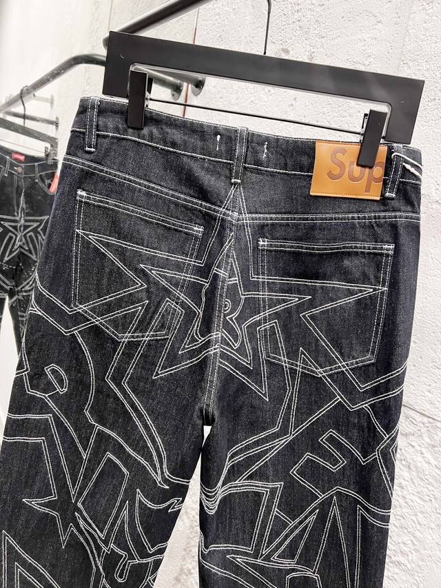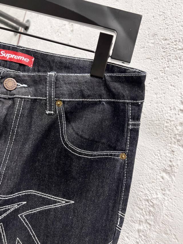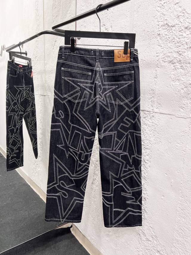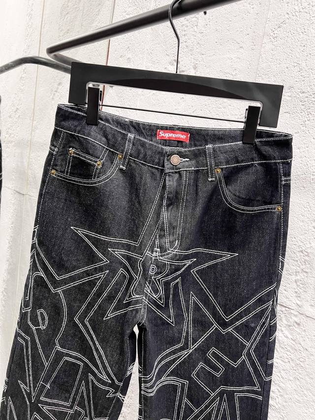 Supreme Ss25 Star-stitched Casual Loose Fit Denim Jeans, Unisex. Top-tier quality. Different washes create a flattering look for both slim and thick legs. The straight-leg, slim fit is flattering and the perfect length is timeless. Easy to style and versatile, a wardrobe essential! The fabric is both structured and soft against the skin, and the washing process is top-notch. A must-have! Includes all three tags: wash, label, and hangtag. Color: Black. Sizes: 30, 32, 34, 36.