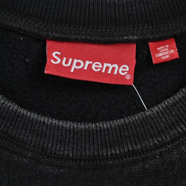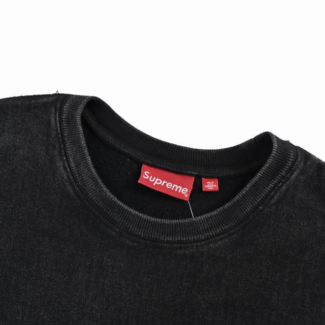 Supreme Cracked Box Print Washed Crew Neck Sweatshirt. This sweatshirt is made from the original design, using the same weight of linen-cotton fabric with a thin fleece lining. It offers comfortable wear while ensuring a crisp and durable feel. The overall garment undergoes a washed and distressed finish, giving it a vintage look. The chest features a matching Supreme Box Logo printed in the same color, treated with a special washed and distressed finish for a unique retro vibe. The classic Crewneck fit is relaxed yet not baggy. This is Supreme's first washed version of the Box Logo crew neck sweatshirt, significantly different from previous products. The washed and distressed finish aligns with the current retro revival trend in high street fashion, giving the garment a unique sense of age. Size: S-XL.