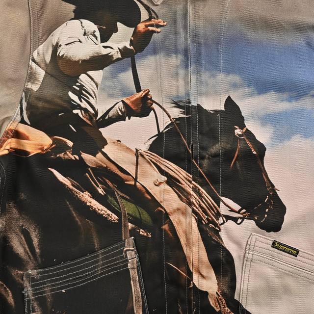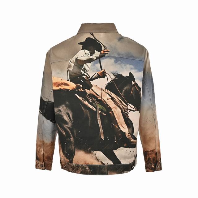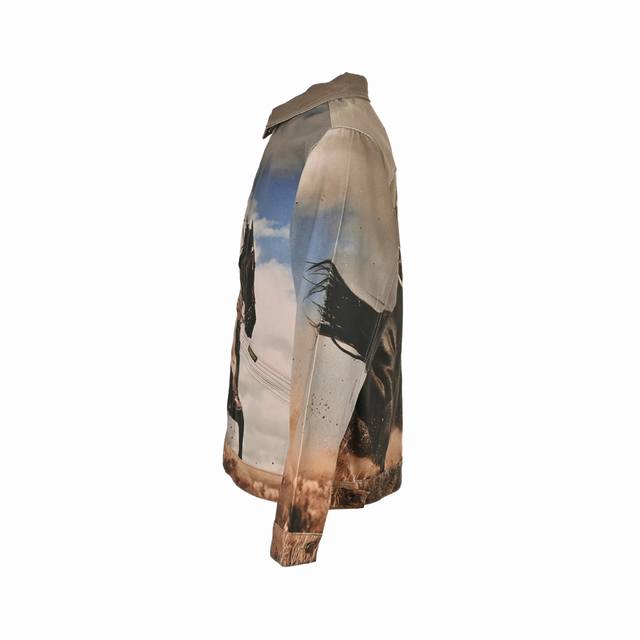 . This jacket blends classic denim design with the unique visual style of an artist. It's the most eye-catching piece in the collection and exudes personality.