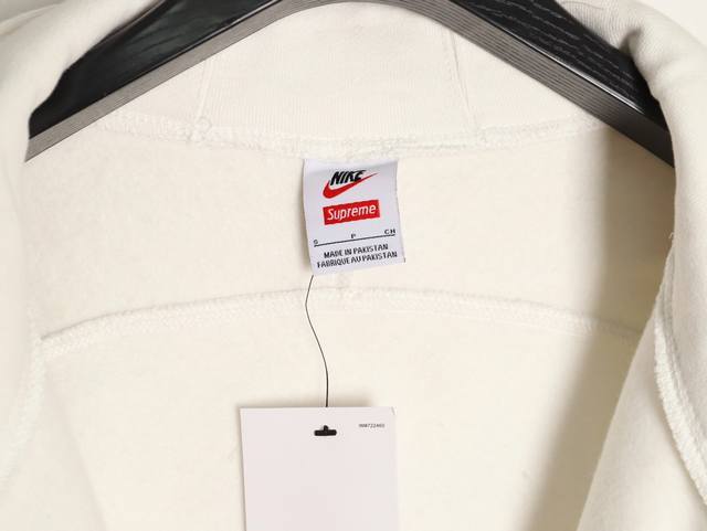 Supreme X Nike 25Fw Nike Collaboration Zip-Up Jacket. Made of pure cotton, its quality is evident from the touch. Versatile and stylish, it features a three-needle, five-thread construction, bound collar trim, and 480g heavyweight pure cotton ribbing, custom-dyed in the same batch, offering a soft, comfortable, breathable, and skin-friendly feel. The embroidery is done using a Behringer Beks-Y924 machine, a level superior to Tajima embroidery machines. Embroidery thickness, saturation, and dimensions are identical to the original. Sizes: S-XL.