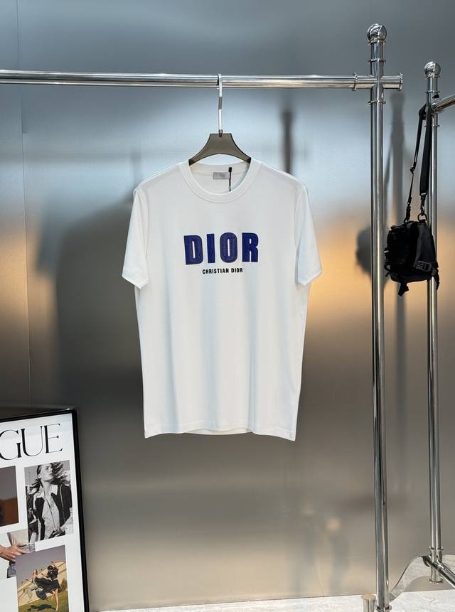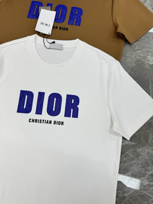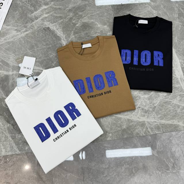 Top-tier style! Dior 25S new modal T-shirt. The most stylish item this season. Features the classic Dior logo on the chest, blue lettering against a solid color background, a simple yet highly recognizable design. The scale-like texture adds a touch of luxury, and the lettering creates a unique visual effect! Crafted from premium G modal cotton, it's incredibly soft and comfortable. Its fine texture and comfort are guaranteed, providing an exceptional wearing experience! Colors: Black, White, Khaki. Sizes: M-3XL (slim fit). S and 4XL can be custom-made! Recommended size: L for 175cm, 140kg.