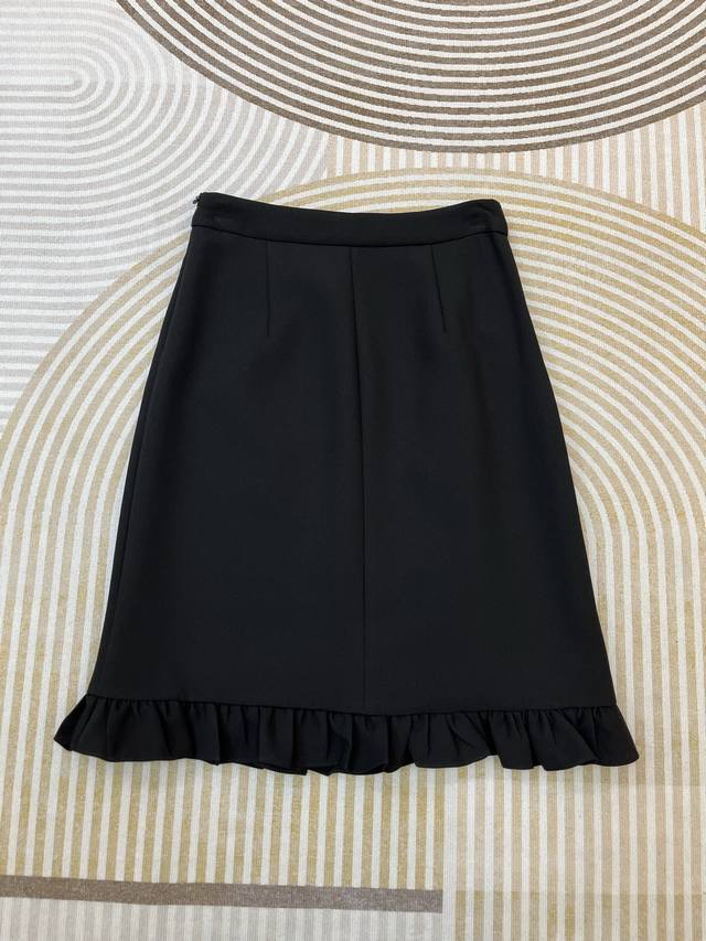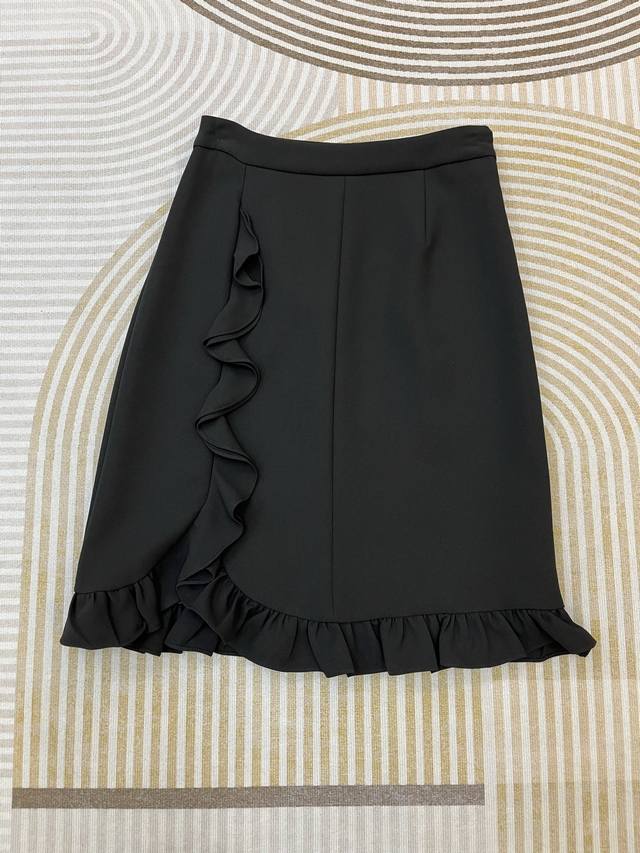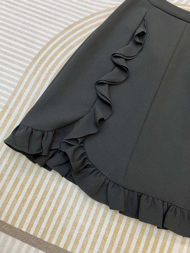 25 new autumn style Valentino same style high waist ruffle skirt all black S-Xl