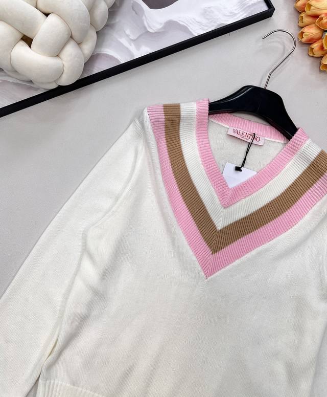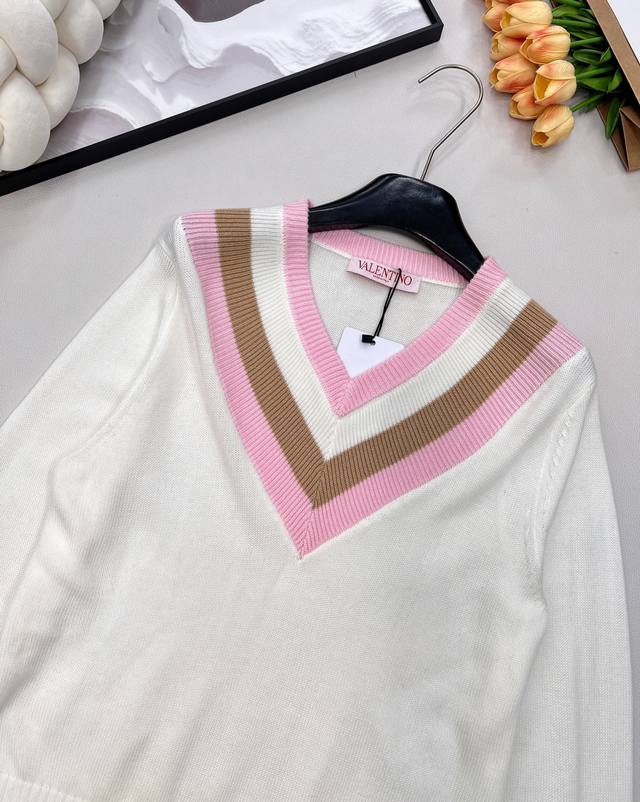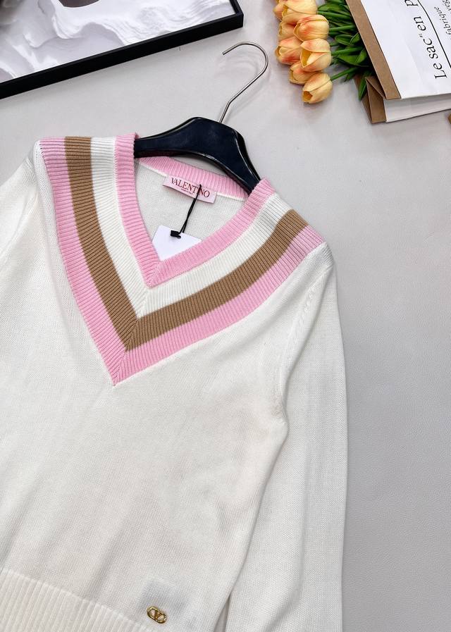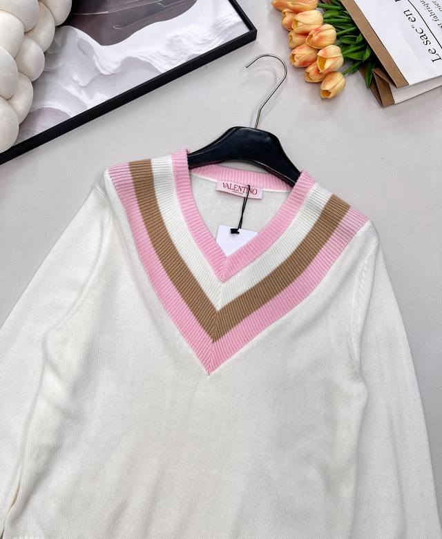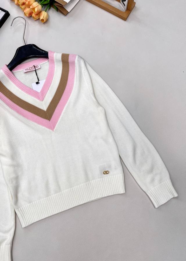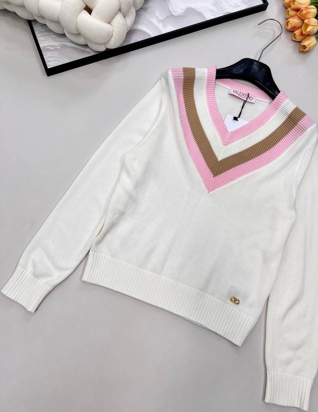 Valentino 25Ss New V-neck Knit Sweater... This Valentino sweater is absolutely gorgeous! It has a retro vibe and is incredibly youthful! Made entirely of 100% wool, it's soft, skin-friendly, and doesn't itch. A must-have knit sweater for winter! All tags are complete. First order shipped. Sizes S, M, L,