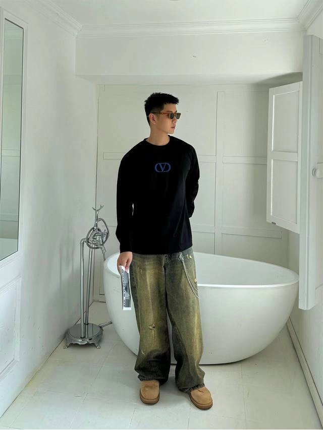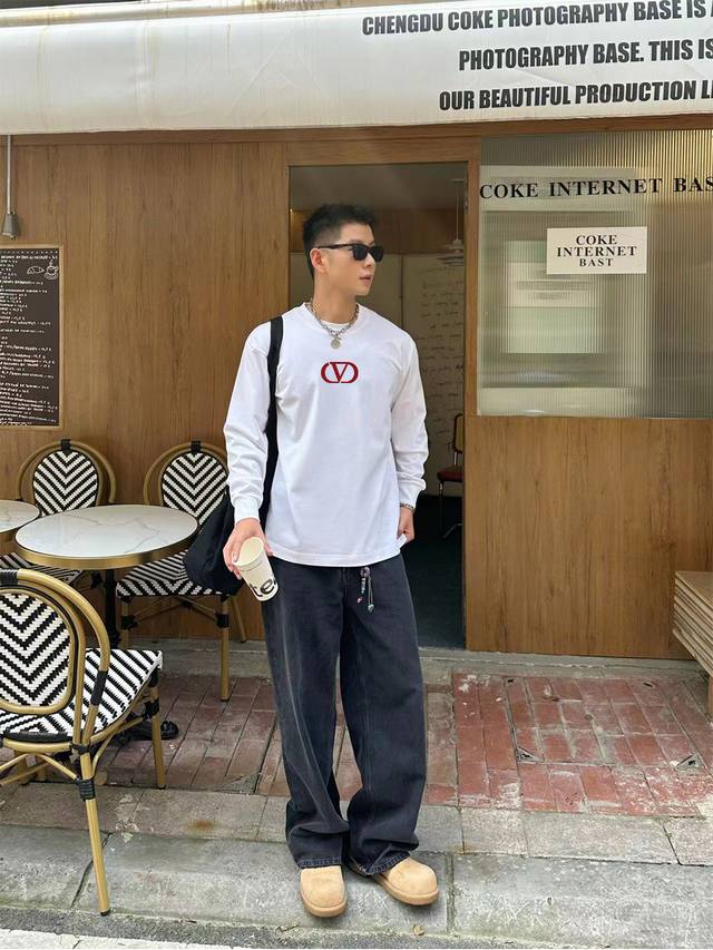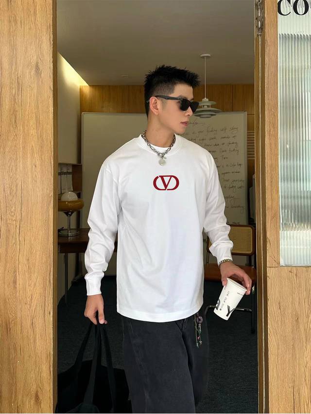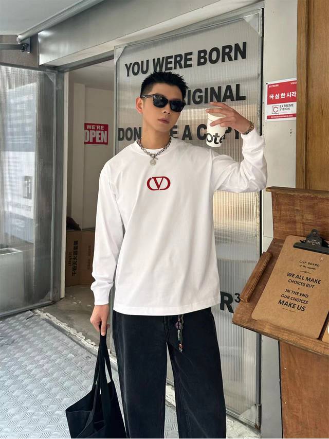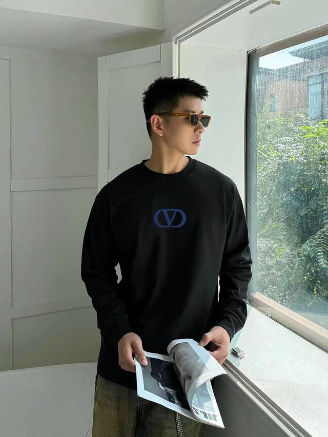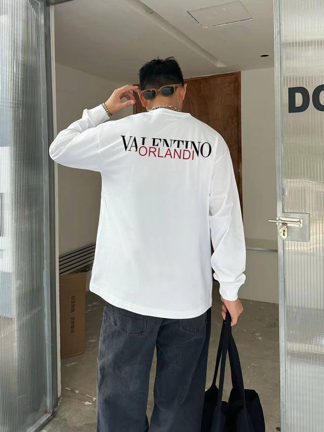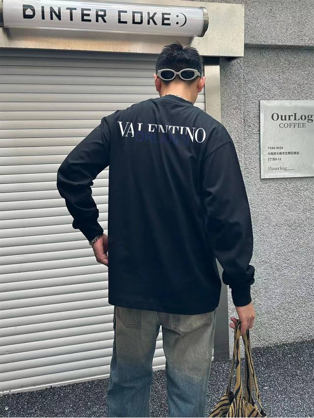 Valentino 2025 Spring and Autumn new round neck long sleeve T-shirt with contrasting logo pattern on the front and back. High-end, simple, loose, casual, breathable and versatile. Unisex style. Size: SML Xl Xxl Five sizes