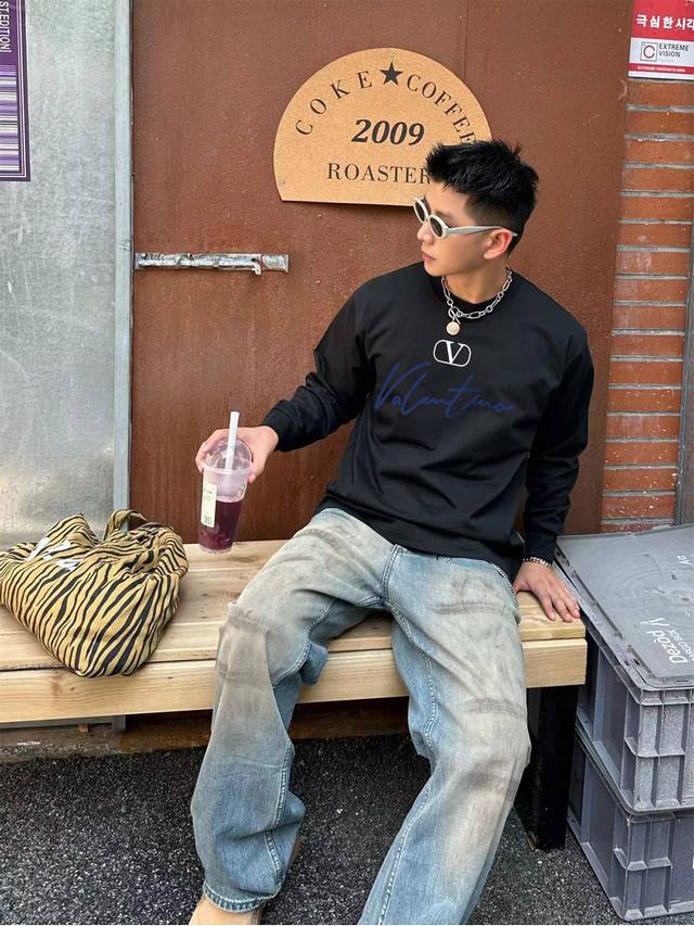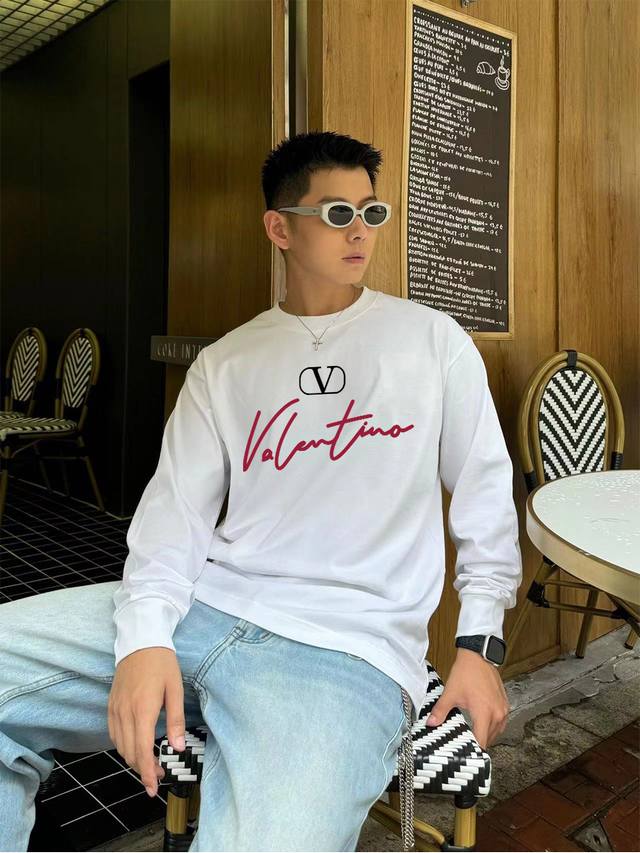 Valentino 2025 Spring and Autumn new round neck long sleeve T-shirt with contras