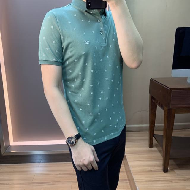 Valentino. New summer collection from Valentino. This stylish, embroidered business casual lapel short-sleeved T-shirt is made from heavyweight mercerized cotton, creating a soft, refined fit that's naturally comfortable. The exquisite medallion-style design features a simple, high-quality polo collar, which is stylish and elegant, and the overall craftsmanship and stitching are impeccable. This lapel-style piece is sure to add a touch of elegance to the urban fashionista, adding a touch of gentlemanly flair! Sizes: M-3Xl