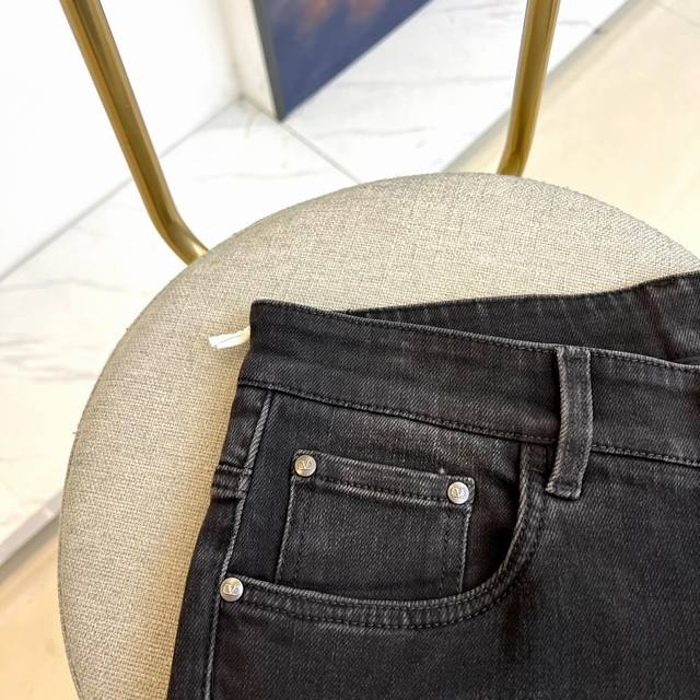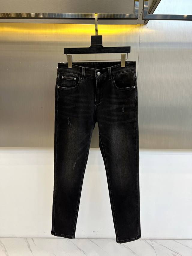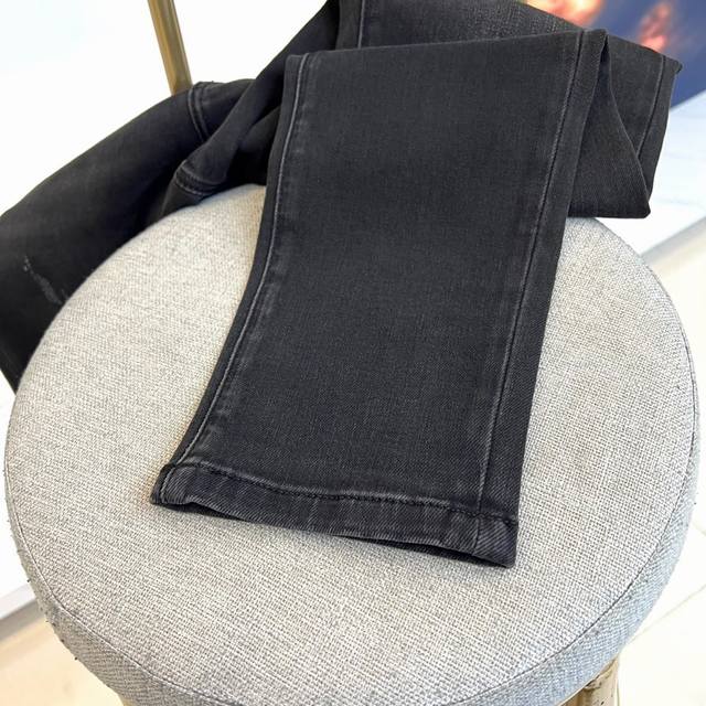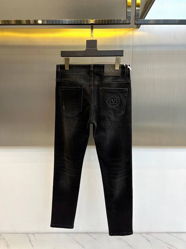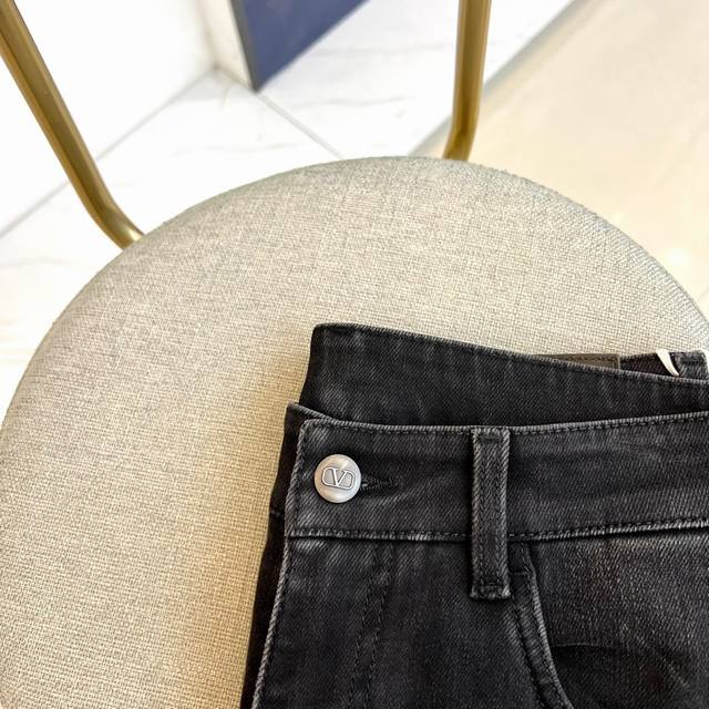 Vt Valentino, 2025 Autumn and Winter new black jeans, with classic straight cuts, reshape the must-have items of the modern wardrobe. Made of high-quality black washed denim, the back pocket is decorated with the brand's iconic Vlogo embroidered logo, highlighting the exquisite craftsmanship of the Paris studio. The details reflect Italian craftsmanship, and the leather label on the waistband complements the precise distressing treatment. Its style perfectly blends street casualness and high fashion sense. The black tone has both calmness and modern temperament. It can be paired with a leather jacket to show rock style, or paired with a suit jacket to interpret a mix-and-match aesthetic. With its iconic embroidery and neat tailoring, this pair of jeans is an ideal choice for showing a luxurious and casual style in the autumn and winter seasons. 29-38 No 37