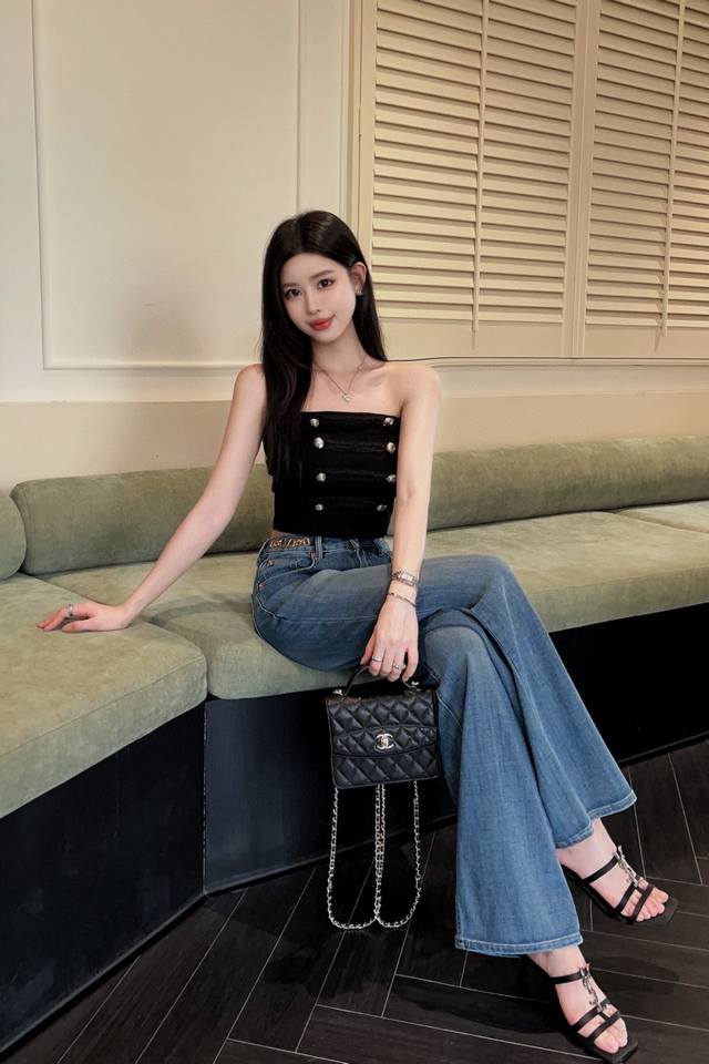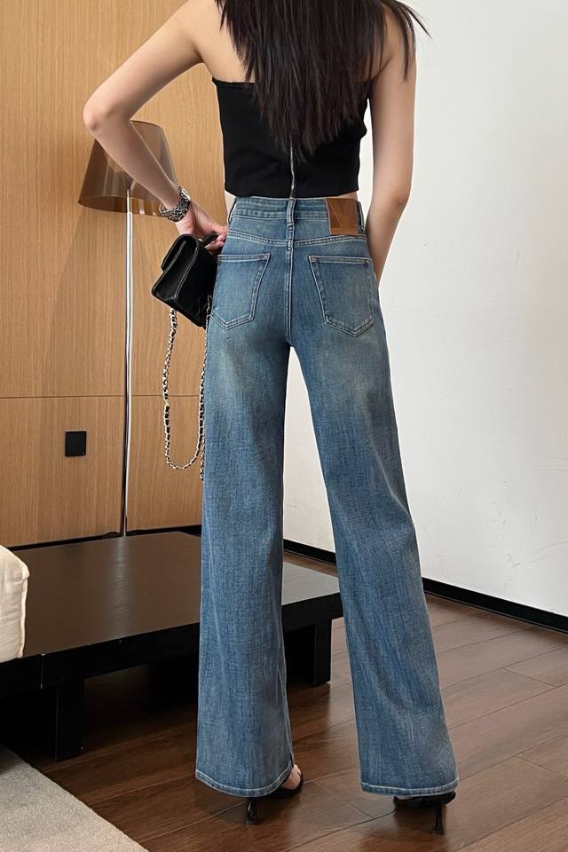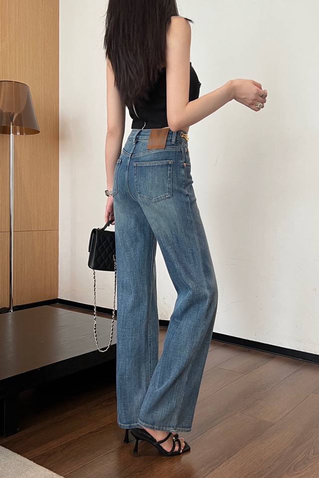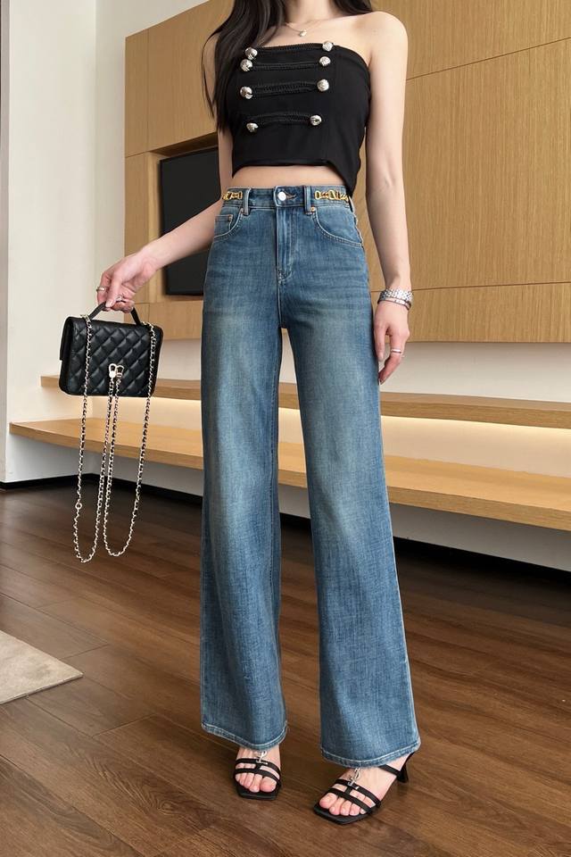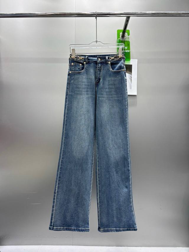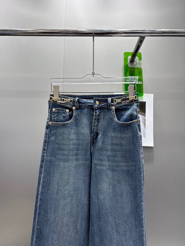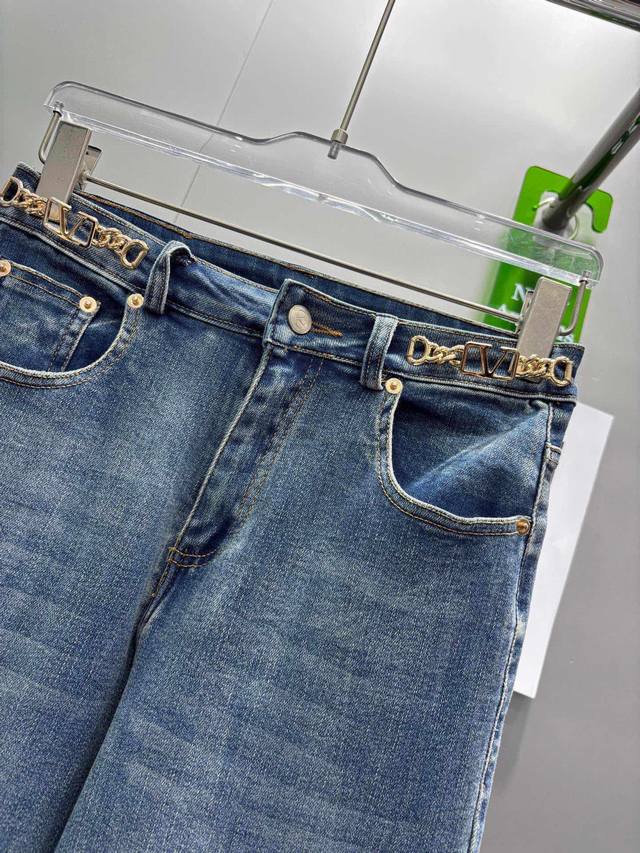 Valentin* Valentino 25Ss new waistband gold V chain logo straight wide-leg pants