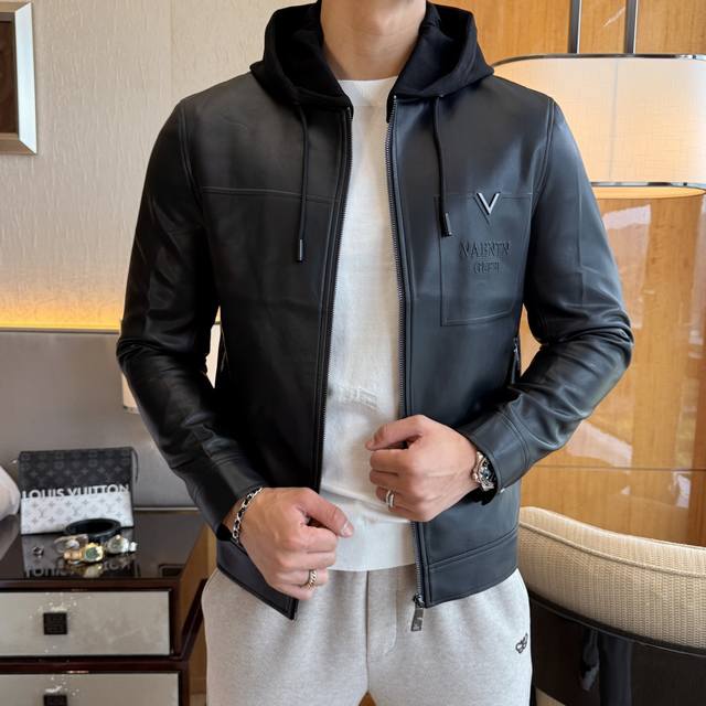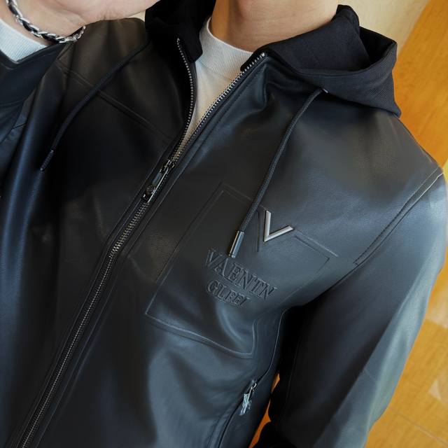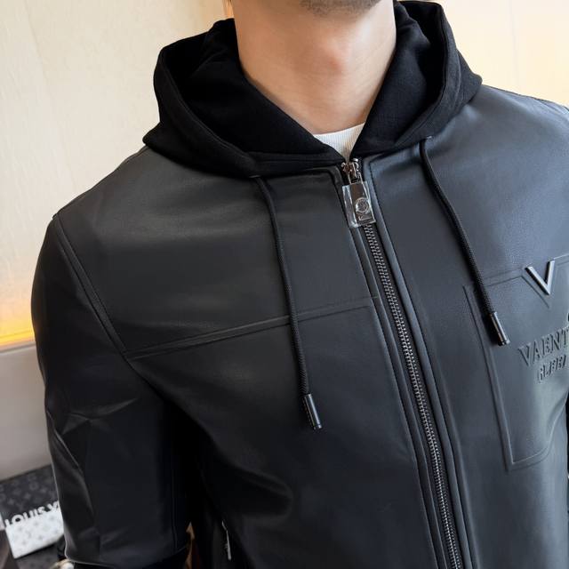 Valentino 2025 Autumn/Winter Hot Selling Leather Jacket, Premium European Goods, Luxurious Design, Fashionable New Arrival, High-End Style, Made of Imported Polyester PU Leather, Perfect Three-Dimensional Cut, More Comfortable and Versatile to Wear, High-Density Stitching! Luxurious and Fashionable to the Extreme! A Must-Have for Trendy Men, Sizes M-3XL. Model 178cm, 145kg, wearing size L/