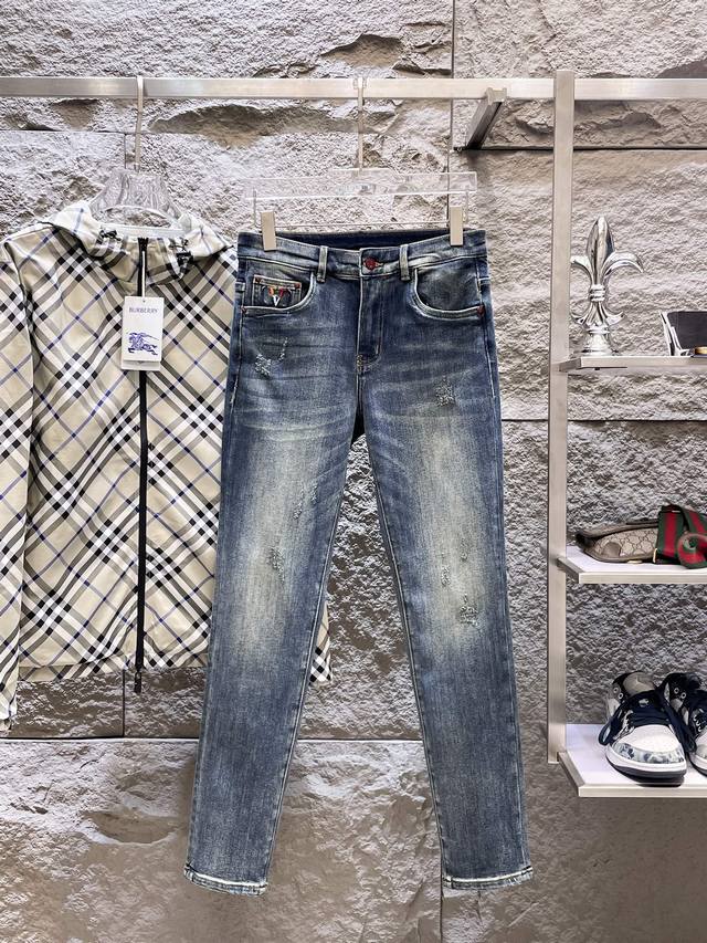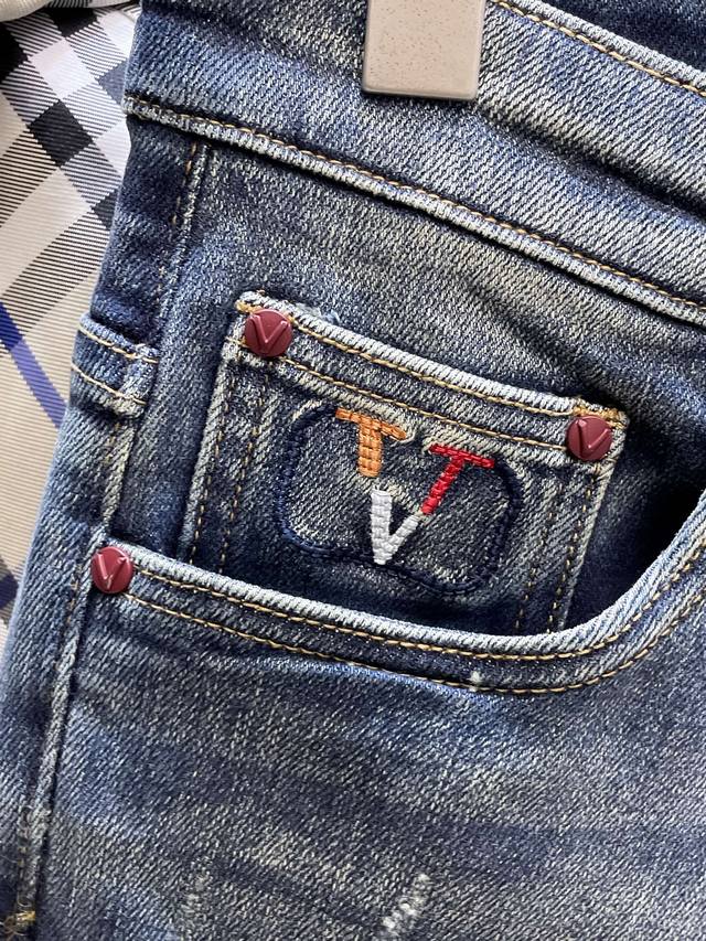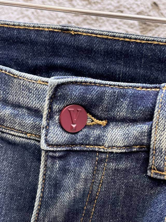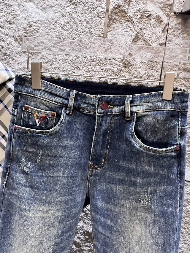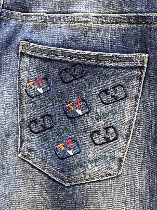 Valentino 2025 Autumn/Winter New Arrival High-End Jeans, Original European Quality, High-Quality Item. Made with imported custom-made high-end washed fabric, high-elasticity, breathable and comfortable. Impeccable workmanship and edging details. Brand elements and design concepts embody high quality. Delicate and soft to the touch, presenting a casual cut, looks great on, slim fit. Sizes: 28-38 (35 available).