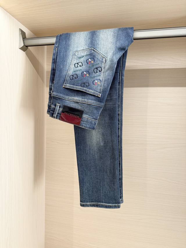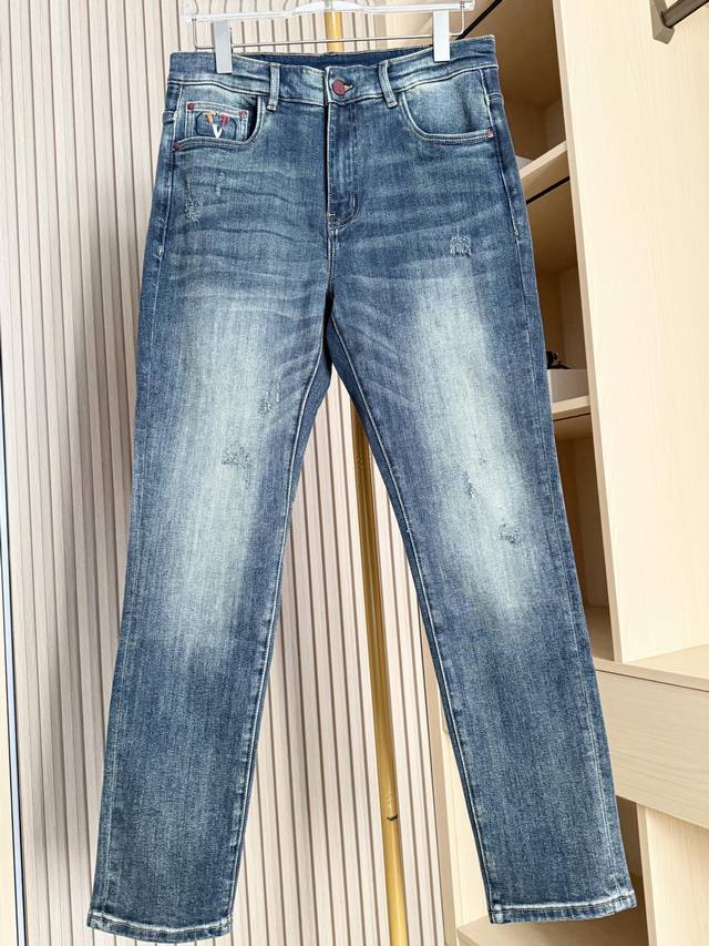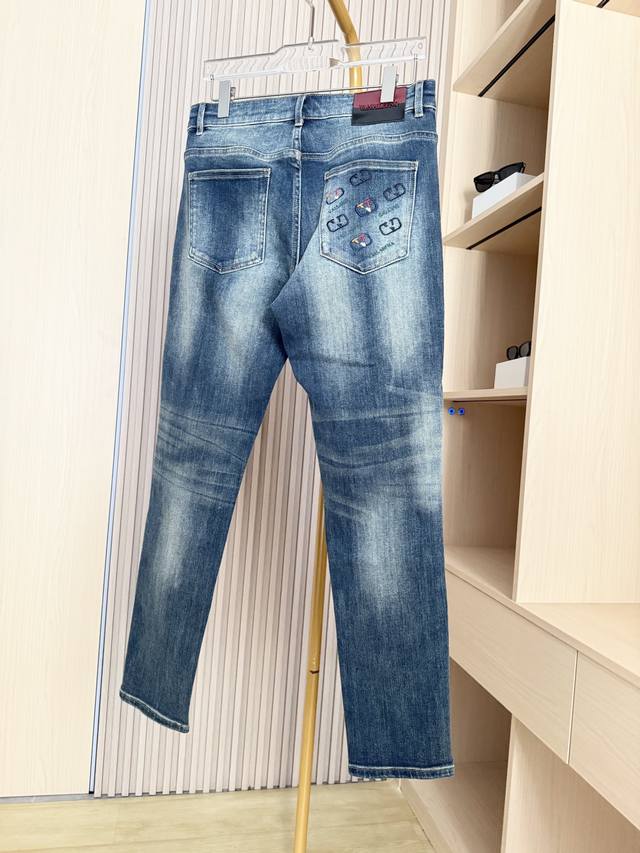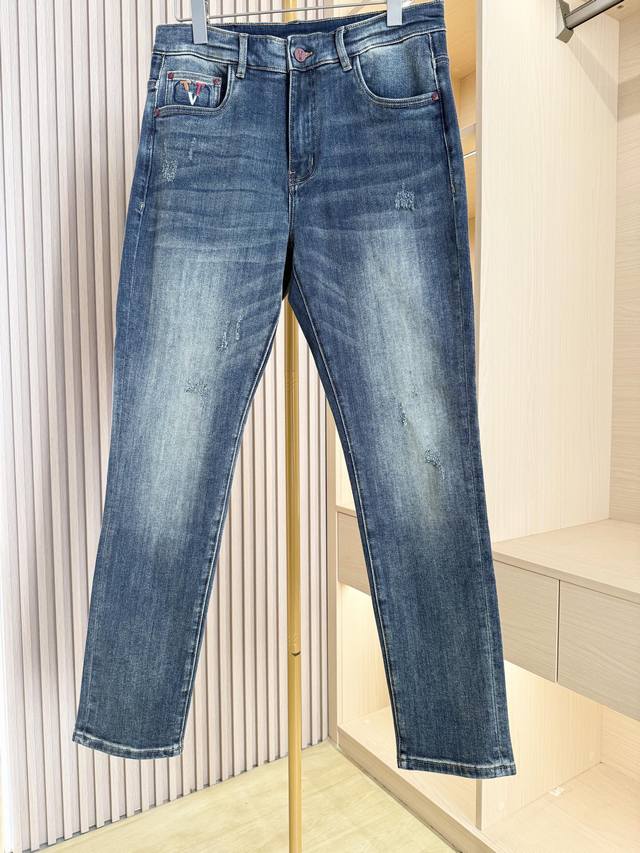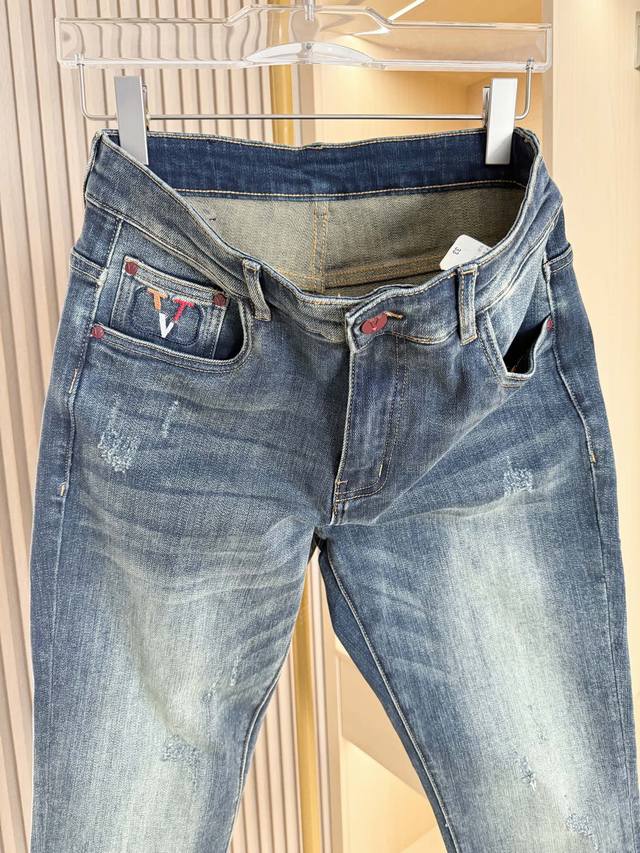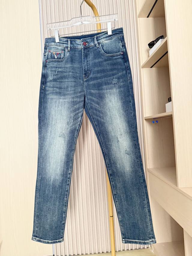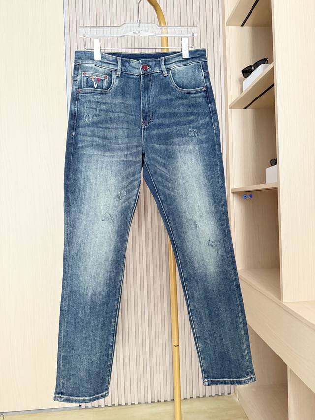 Valentino - 2025 New Arrival Jeans! Made from select high-quality denim fabric, these jeans offer a crisp texture, excellent breathability, and durability while providing a comfortable wearing experience. The washing process creates a natural and layered vintage blue tone, with a subtle and refined distressed effect that exudes quality. The unique embroidered pattern on the back pocket blends brand elements with trendy details, breaking the monotony of denim and adding visual highlights and brand recognition. The classic cut fits the body well, flattering the legs and suitable for various body types. Sizes: 29-38. Comes with Lane Crawford Hong Kong gift box.