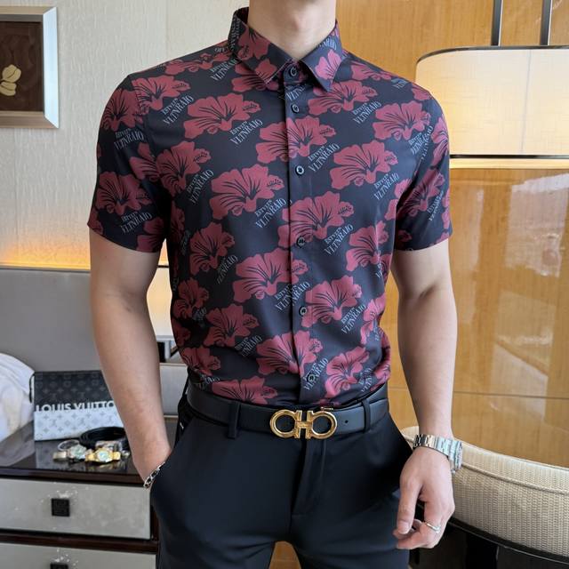 Valentino 2025 Spring/Summer Fashion Hot Selling Short-Sleeve Shirt, sourced from a trading company, in perfect condition, considered a store-quality item, a predictably hot seller. Made of high-end custom imported long-staple cotton fabric, masterfully tailored, with unparalleled texture and excellent skin-friendliness. A striking aesthetic design, exquisite craftsmanship, smooth lines, and perfect styling! Effortlessly elevate your fashion sense, highly recognizable, and looks amazing on. Extremely meticulous and rigorous workmanship, with neat and fine stitching. Suitable for both business and casual occasions! Retail sizes M-3XL. Model 178cm, 145kg wears size L (