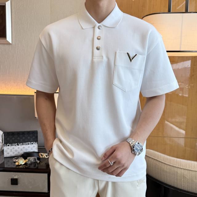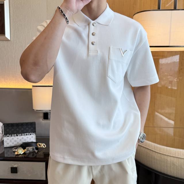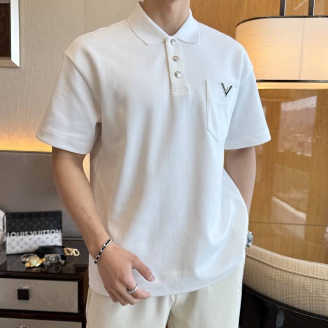 Valentino - 2025 Spring/Summer New Loose-fitting Polo Collar Short-sleeved Shirt Collection. Made from premium long-staple cotton fabric, featuring a stylish designer logo design. The fit is superb, the fabric is delicate, comfortable, and breathable. It looks great with any outfit