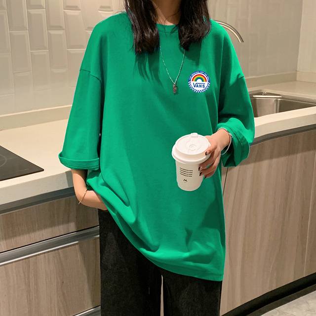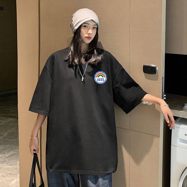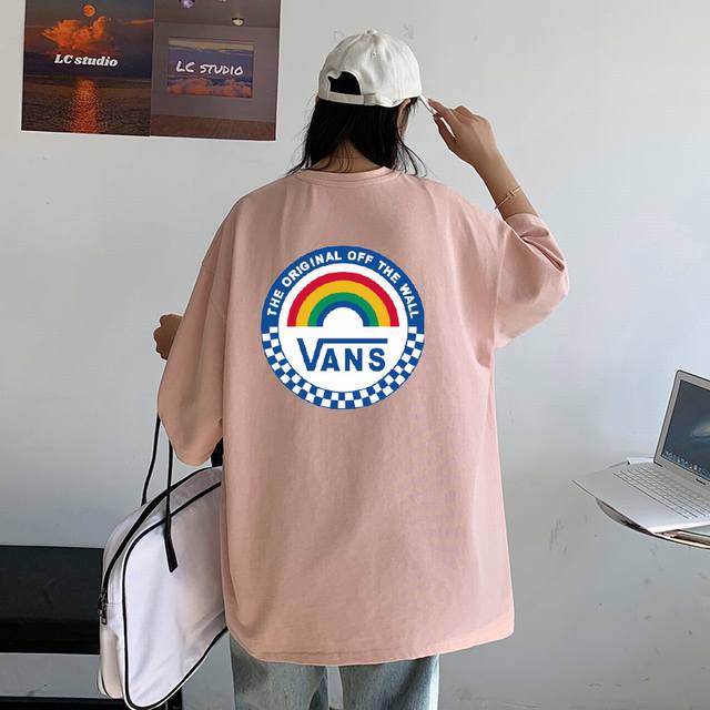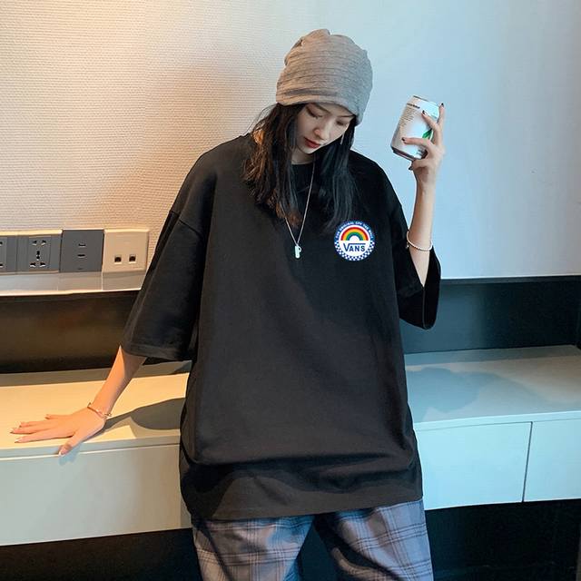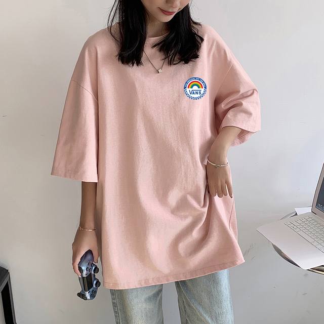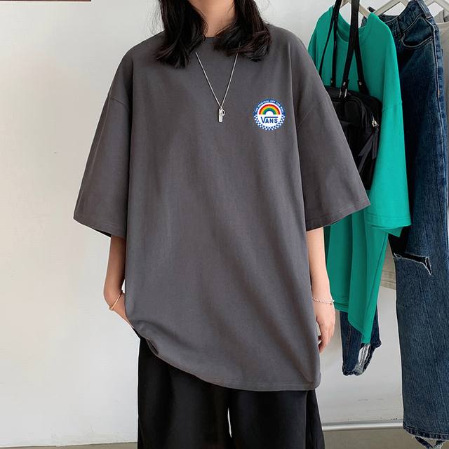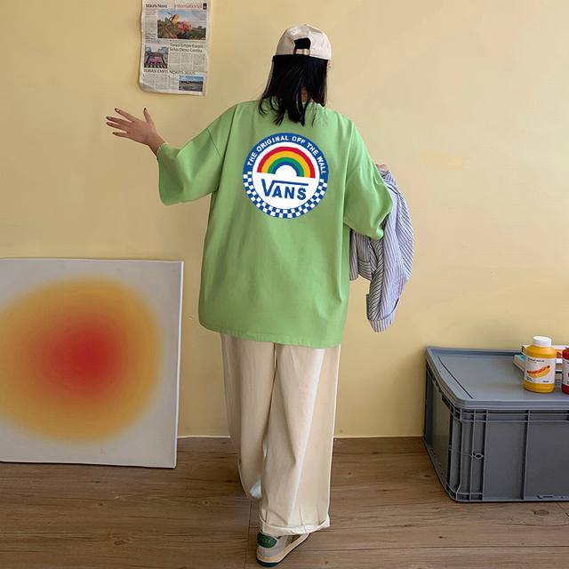 Vans new cute rainbow cartoon style printed short-sleeved T-shirt for couples,
