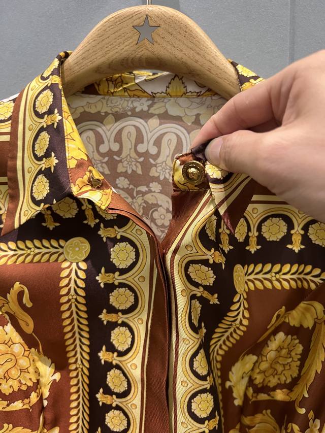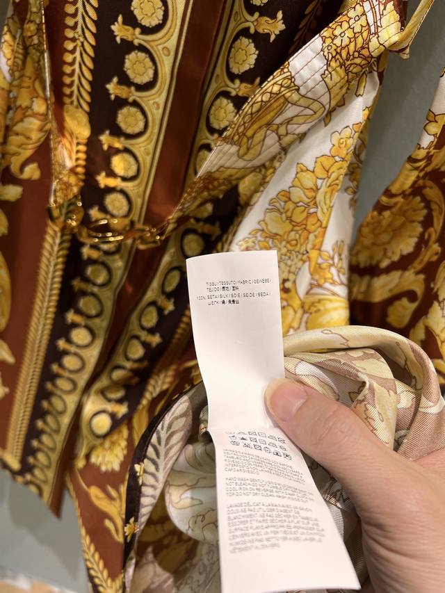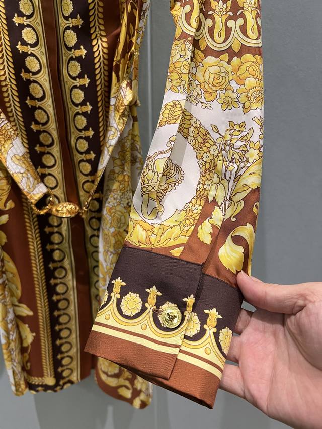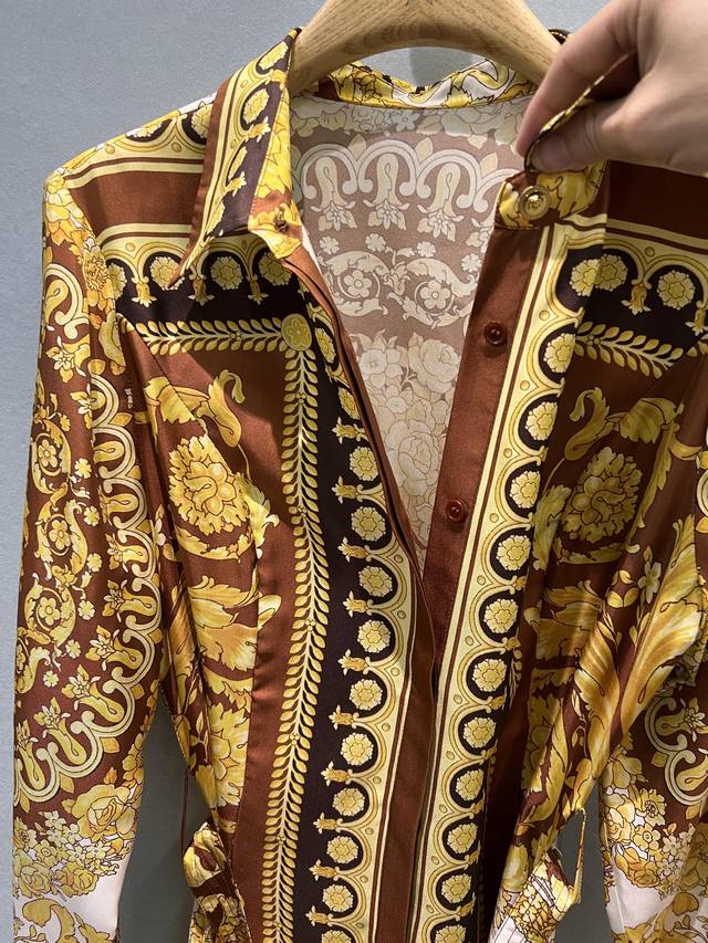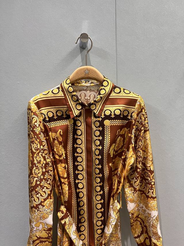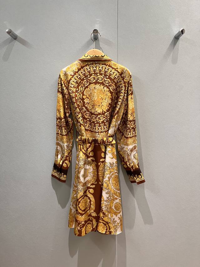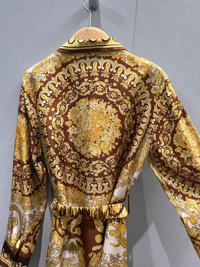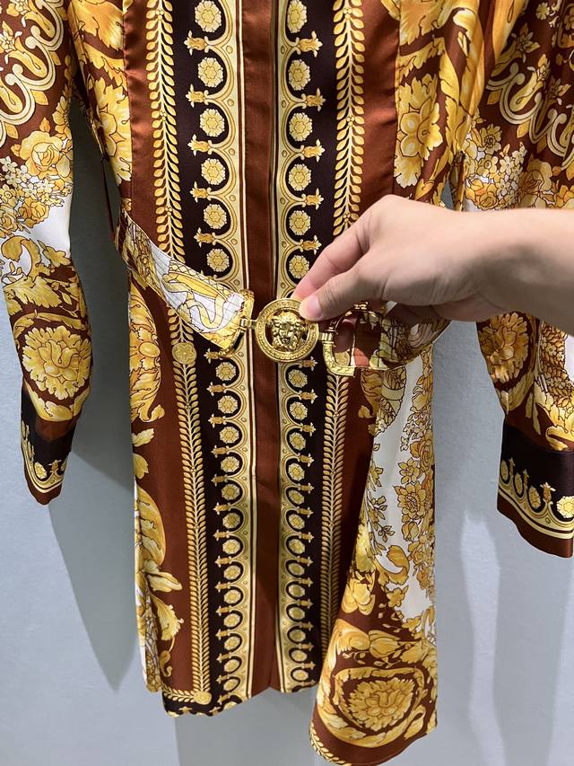 New Versace Baroque style new color positioning printed silk twill silk dress heavy silk with Medusa elastic belt decoration simple and fashionable slimming and sweet age-reducing celebrity temperament S-Xl