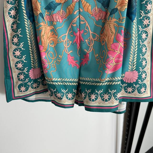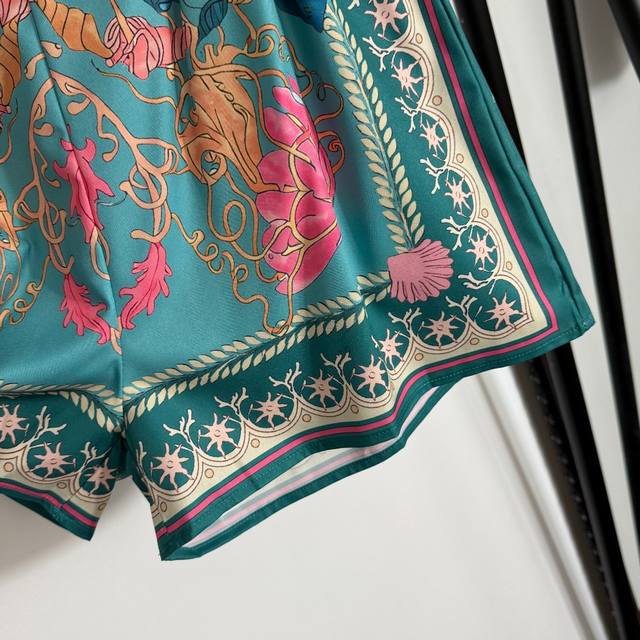 Style No. 20254695 Versac* newest seafood shell print casual shorts, green, S-Xl, M size; waist 68 elastic, length 42.