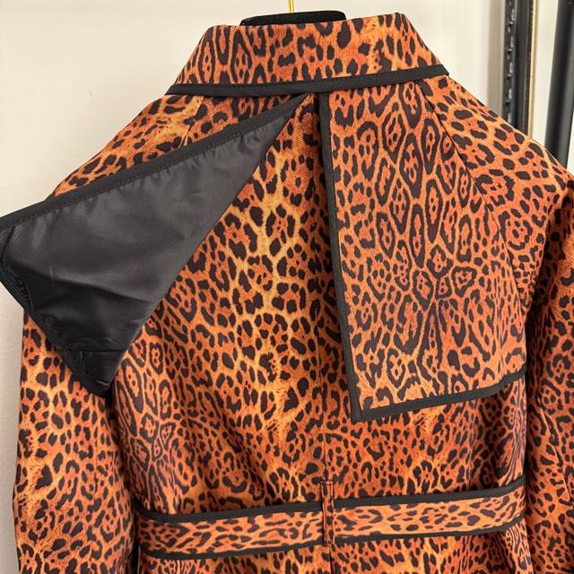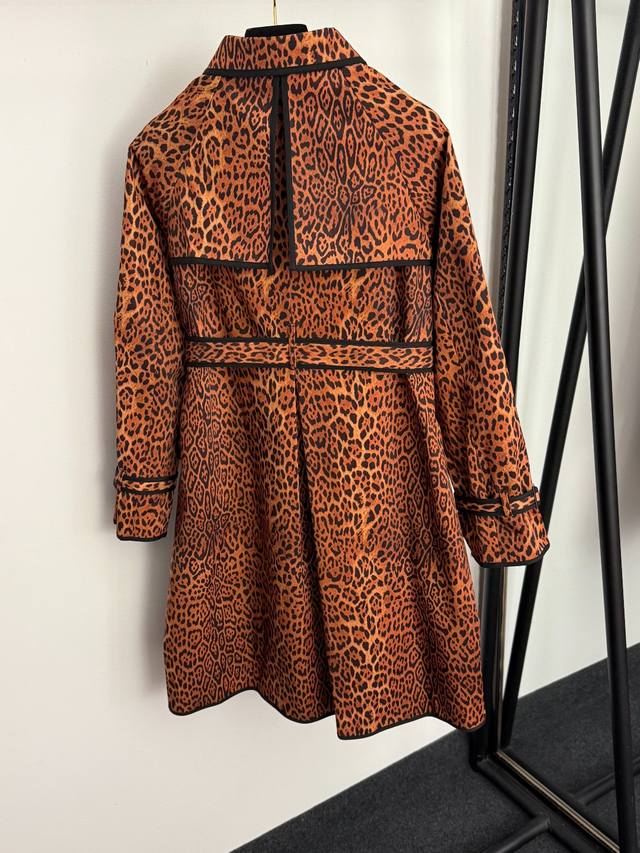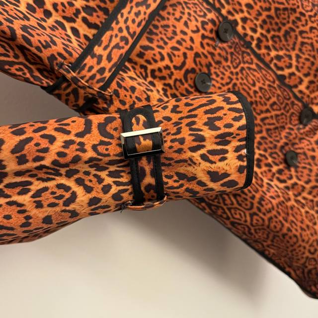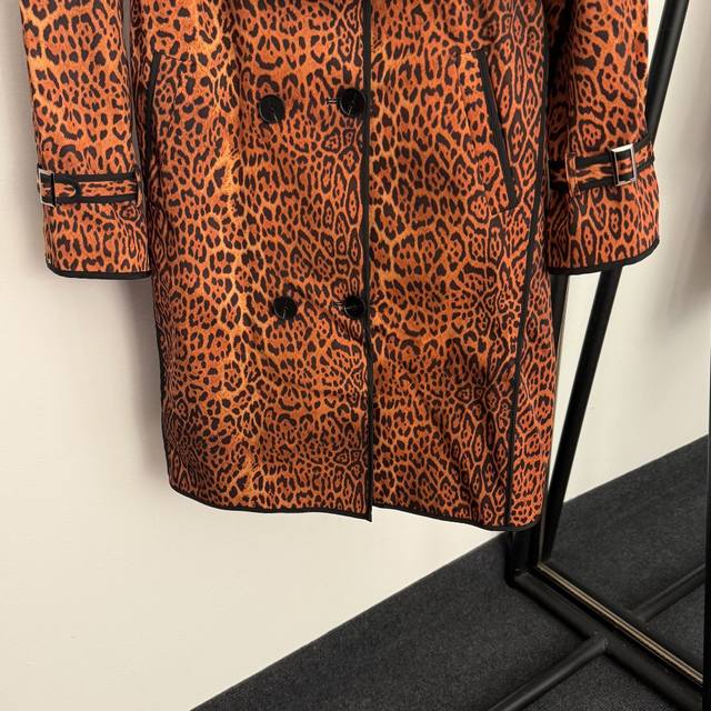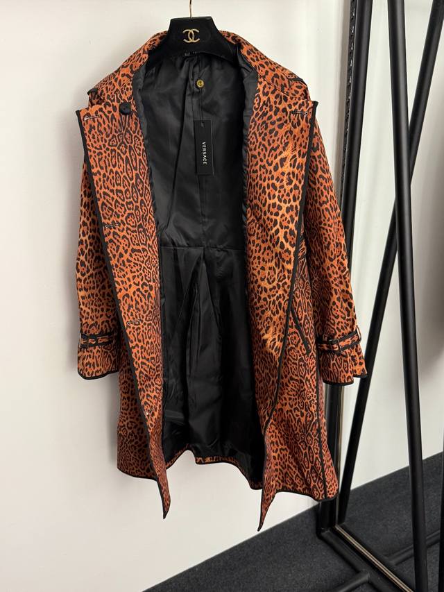 Style No. 20256888 Versac* New European and American Sexy Leopard Print Double-Breasted Lapel Long-Sleeve Trench Coat, Brown, Sizes S-XL, M: Bust 104cm, Sleeve Length 69cm, Length 92cm; Weight: 0.935kg
