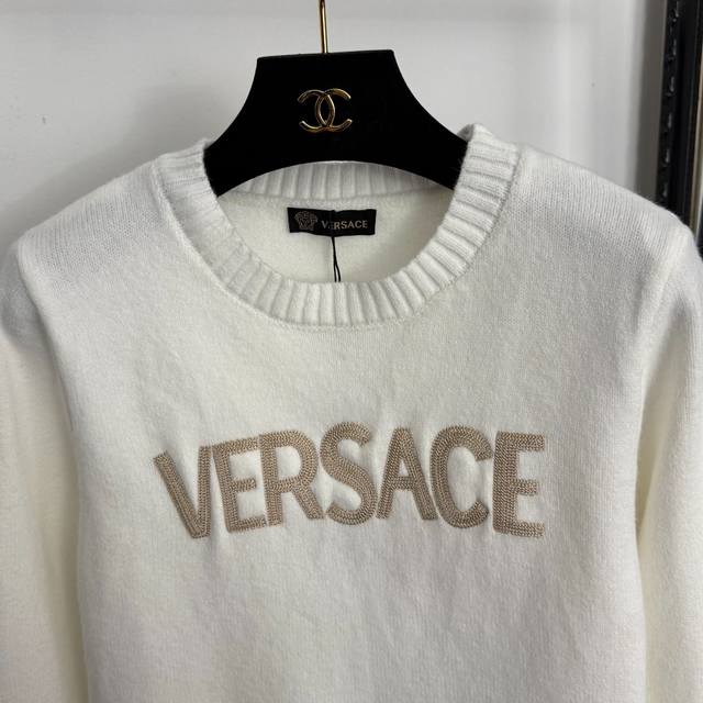 Style No. 20258414 Versac* New Logo Embroidered Letter Pullover Long-Sleeve Knit Sweater, White, Red, Grey, Black, One Size: Shoulder Width 37cm, Chest 92cm, Sleeve Length 59cm, Length 54cm; Weight: 0.315Kg DDD