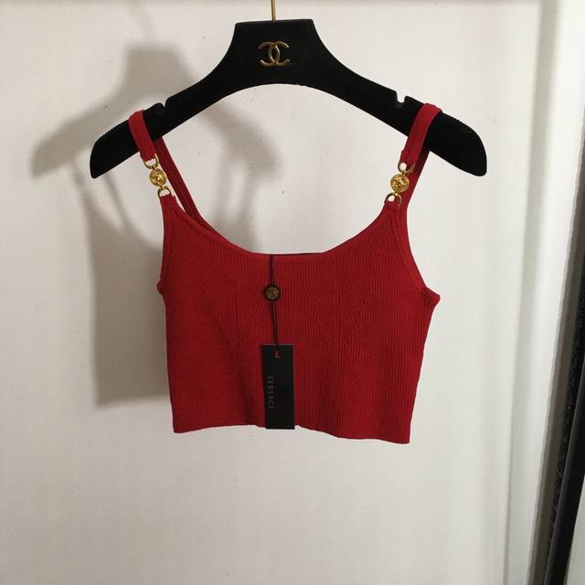 Style No. 3925 Versac* new Medusa portrait gold button shoulder knitted camisole, white, black, red, S-Xl, M size; chest 64, length 36