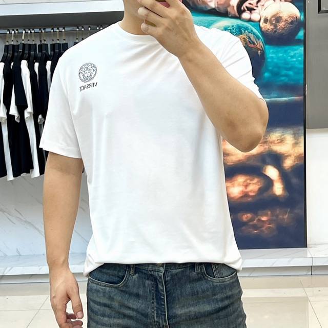 2025 Versace Versace summer new style heavy launch double yarn pure cotton fabric short sleeve spring and summer catwalk style personality exclusive style men and women the same style using imported custom dyed fabrics back collar chain bottom full shoulder no deformation or shrinkage spring and summer latest brick cabinet synchronization fashion and personality super versatile good-looking style men and women are very suitable for everyone's hand must-have style spring and summer latest brick cabinet synchronization fashion and personality super versatile good-looking style spring and summer latest brick cabinet synchronization fashion and personality super versatile good-looking style men and women are very suitable for everyone's hand must-have style.