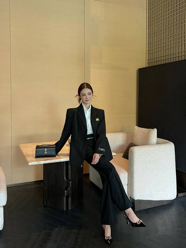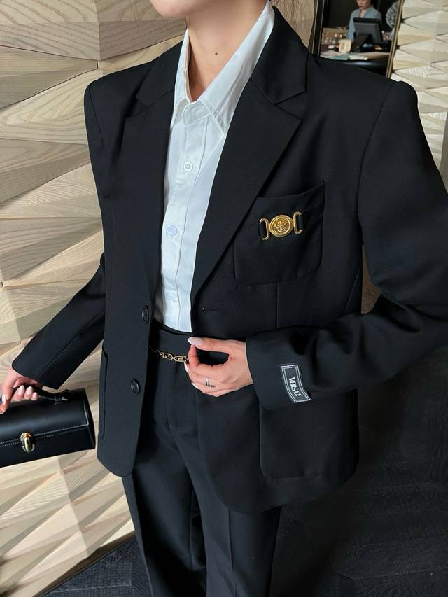 Unisex Versac's latest classic Medusa accessory features pocket embellishments and original logo buttons. This stylish commuter blazer features large pockets! Black, Size M: Shoulder Width 46" with padded shoulders, Chest 110", Sleeve Length 61", Length 73"