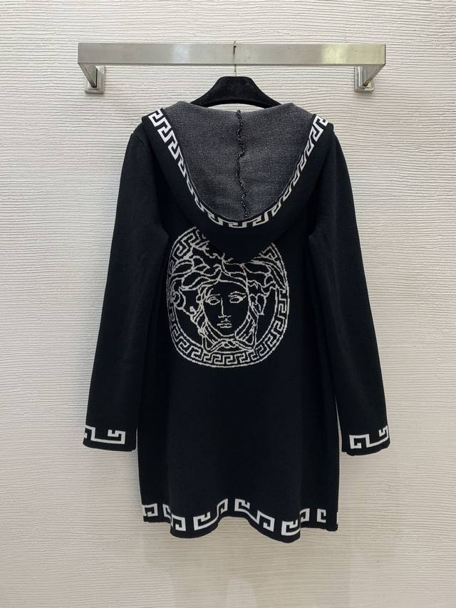 Versac* New Classic Medusa Round Head Fashionable Loose Hooded Knit Cardigan Mid-Length Coat! Black, Brown, Off-White, Size M: Bust 108cm, Sleeve Length 62cm, Length 83cm (