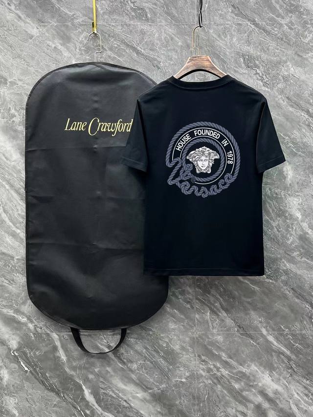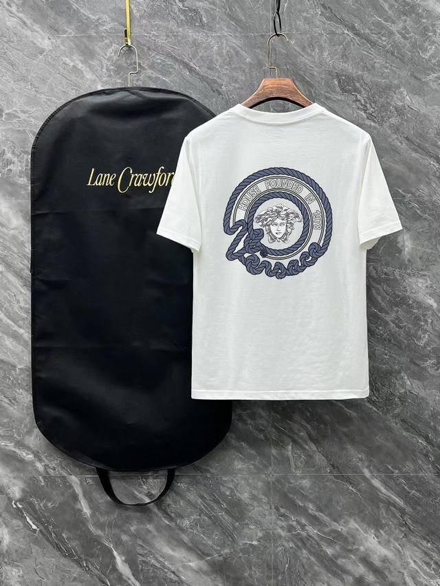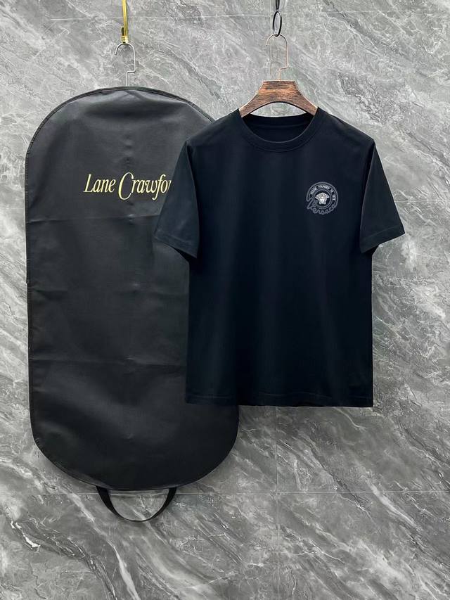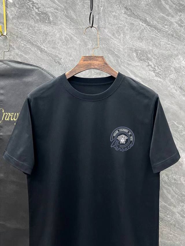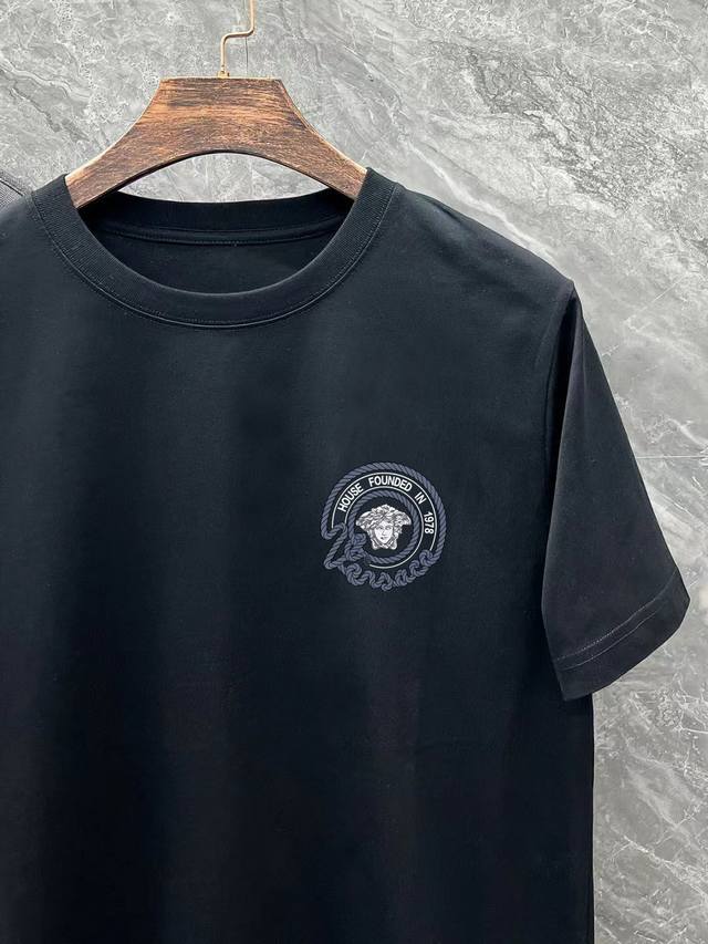 Versace# 2025 Spring and Summer new model first release in the counter, the latest short-sleeved round neck T-shirt, high-end custom design, avant-garde and fashionable! Brand Logo heavy craftsmanship design high-end customization 250 grams of Xinjiang long-staple cotton fabric. Soft to the touch. Comfortable to wear. Counter-level exquisite sewing. Fine workmanship. The upper body effect is invincible and handsome! A must-have item for men! Color: black. White!