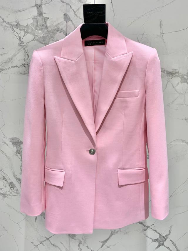 Versace Single-Button Wool Suit with Slim Fit The single-button design is classic yet stylish, truly irresistible! The wool material of this suit feels amazing, incredibly comfortable to wear, and provides excellent warmth! Moreover, its tailored fit is perfect, instantly elevating your style. Whether for work or a date, you can easily command attention! #Versace* #SingleButtonWoolSuit #Fashion #SimpleAndElegant #WarmAndComfortable Sizes Sml Colors White and Pink