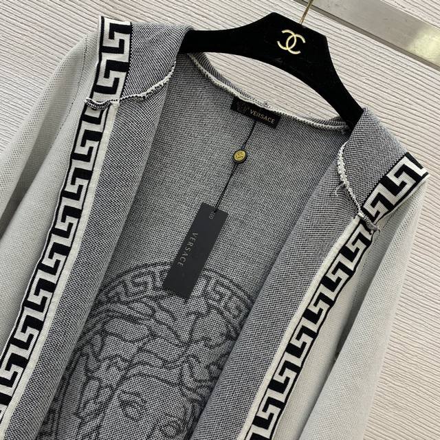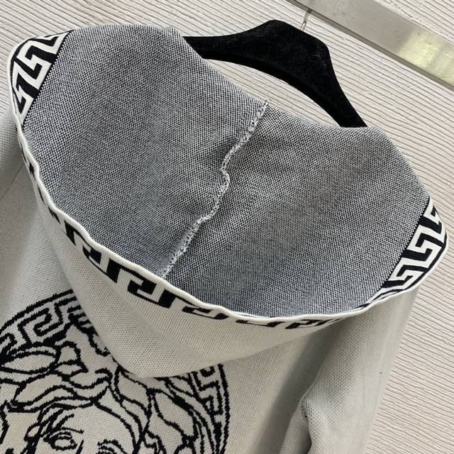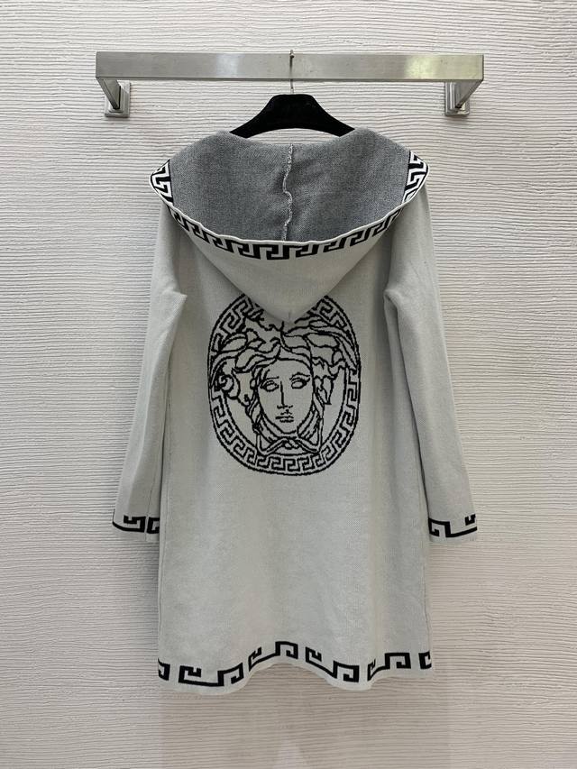 Versac's latest classic Medusa round head portrait loose hooded knitted cardigan