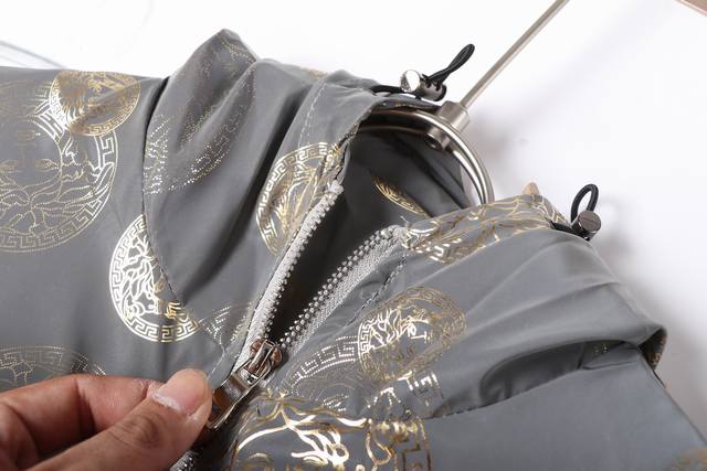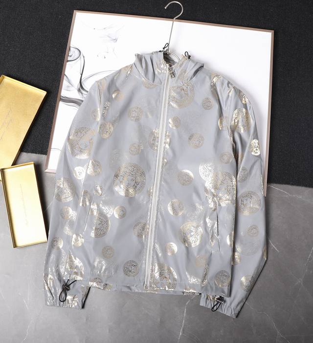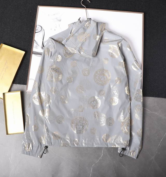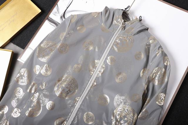 Available at Versace counters, this new unisex colorblocked, lightweight hooded