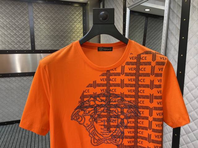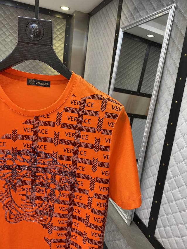 Factory p welfare model Versace: The latest fashionable round neck short-sleeved T-shirts for spring and summer from the official website, synchronized with the official website, made of mercerized cotton fabric! Comfortable next to the skin, silky and breathable, durable and easy to wear. The Medusa logo badge is heavily hot-drilled, extremely eye-catching, and the original factory craftsmanship is meticulous. A must-have item for stylish men. Counter sizes: M-4Xl