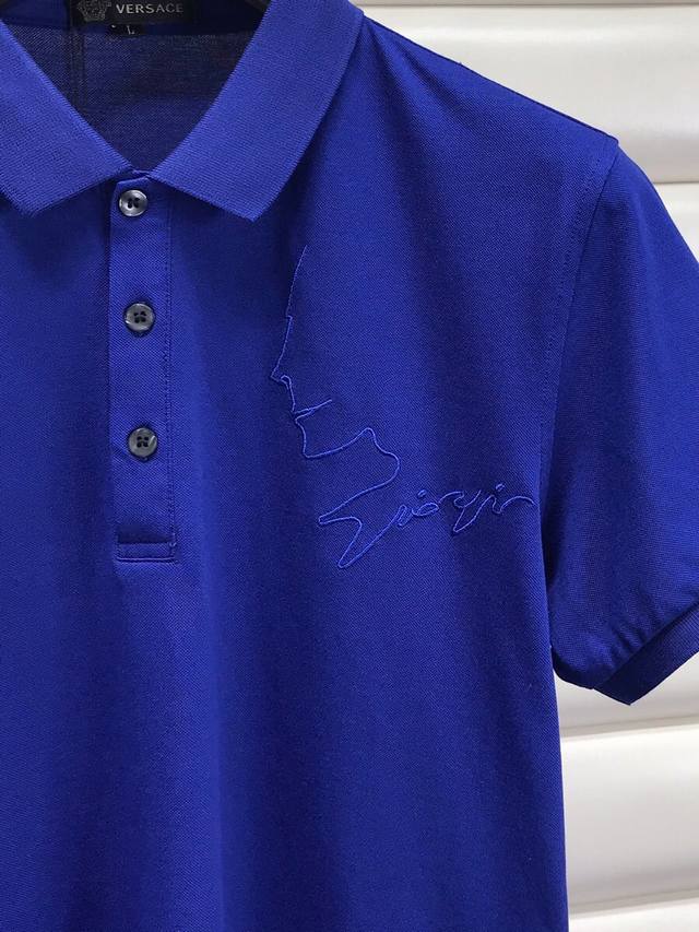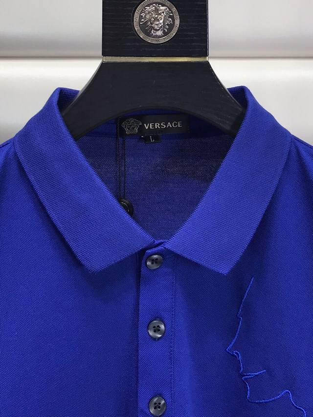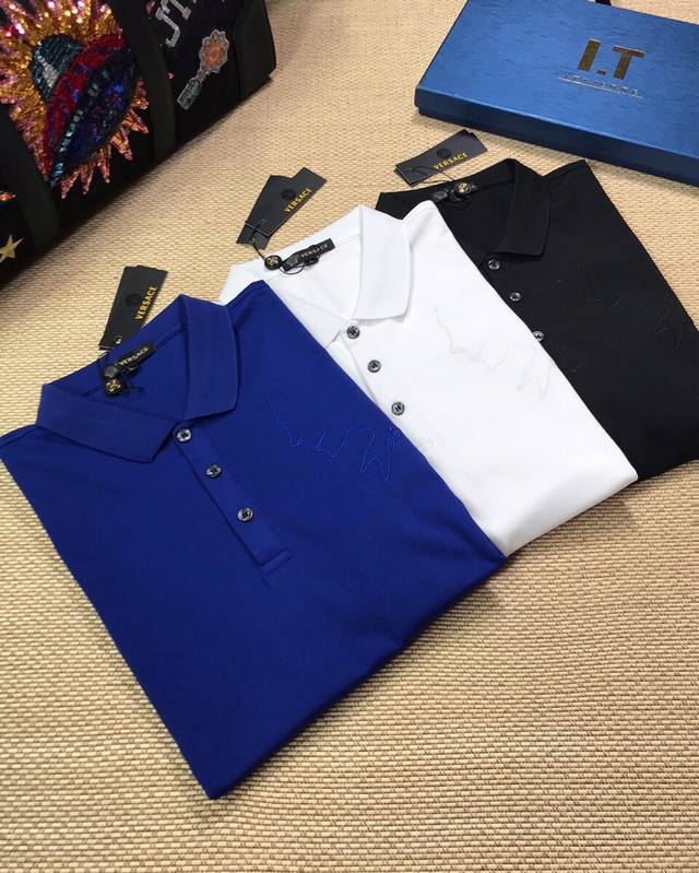 Special offer Versace 20Ss summer new lapel T-shirt polo shirt, line side face embroidery pattern, simple and elegant, upper body version is super good, three-dimensional cutting, body shaping and slimming, pure cotton texture is soft and comfortable, 3 colors, size: M-Xxxl, please indicate height and weight