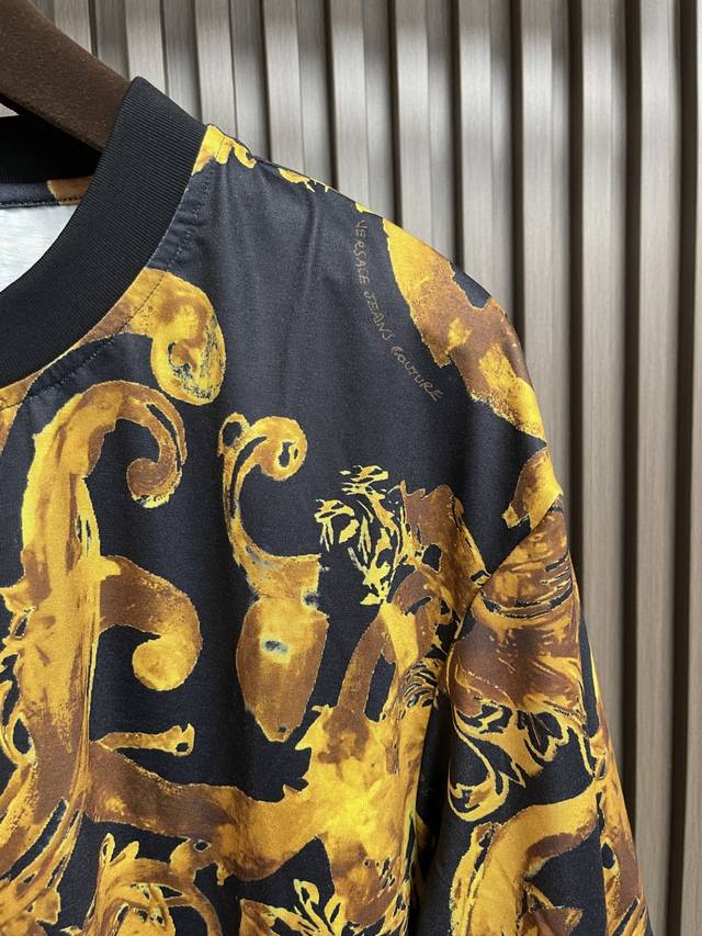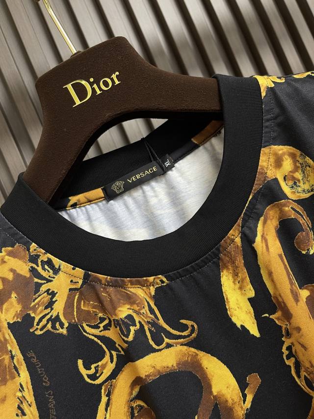 Versace Barocco short-sleeved T-shirt and shorts set featuring the brand's iconic Barocco print, a beloved logo featuring acanthus leaves. Barocco print. Sizes: M-3Xl