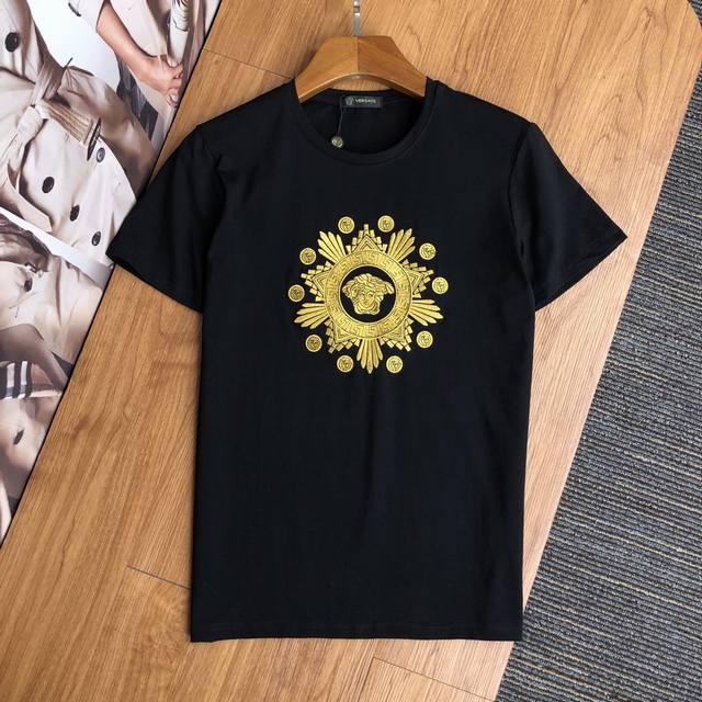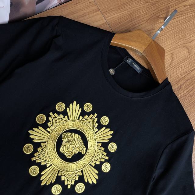 Versac, 20Ss European counter's latest embroidered Medusa logo casual short T-s