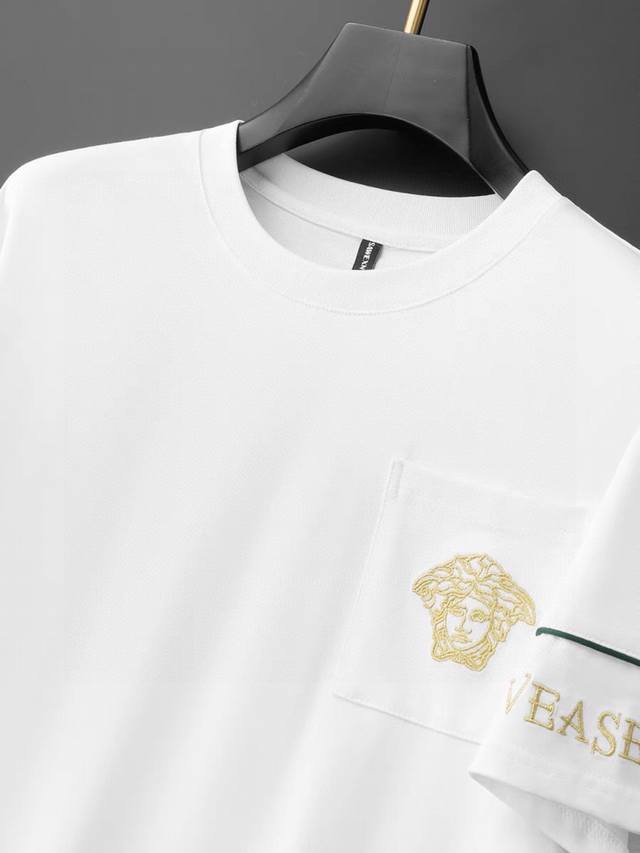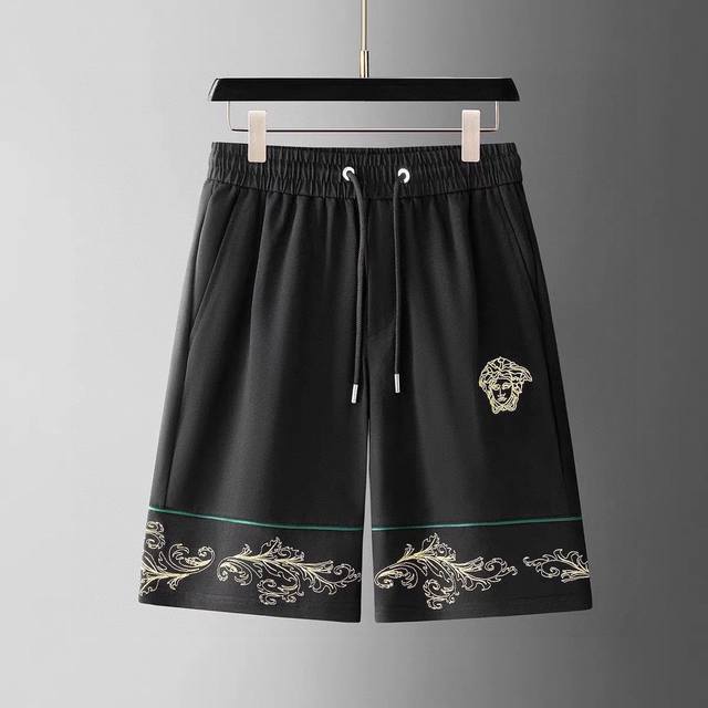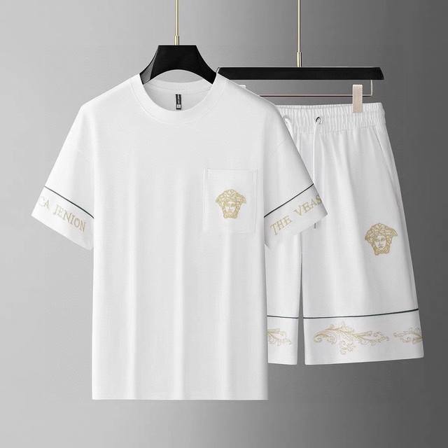 Versace 2025 official website style. World-renowned luxury brand. Summer men's short-sleeved shorts set. High-quality, original goods. Made with imported fabrics, this set is a trendy and versatile style for the season. Simple and elegant, with precise craftsmanship, it puts you at the pinnacle of fashion. Sizes: M-4Xl, suitable for weights up to 200 catties (