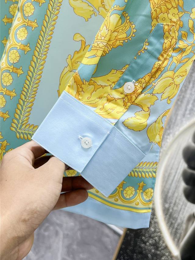 Versace 2025Ss new men's long-sleeved shirt, a high-end version! Custom-made fabrics are breathable and comfortable, with impeccable details and brand-inspired design concepts, reflecting high quality. It has a delicate and soft feel! The casual cut and upper body shape are fantastic! Sizes: M-Xxl (size runs large). M is suitable for 130-140 catties, L is 150-160 catties, Xl is 170-180 catties, Xxl is 190-200 catties, and