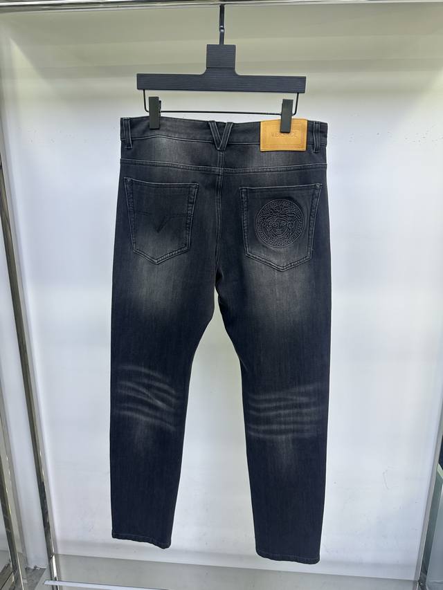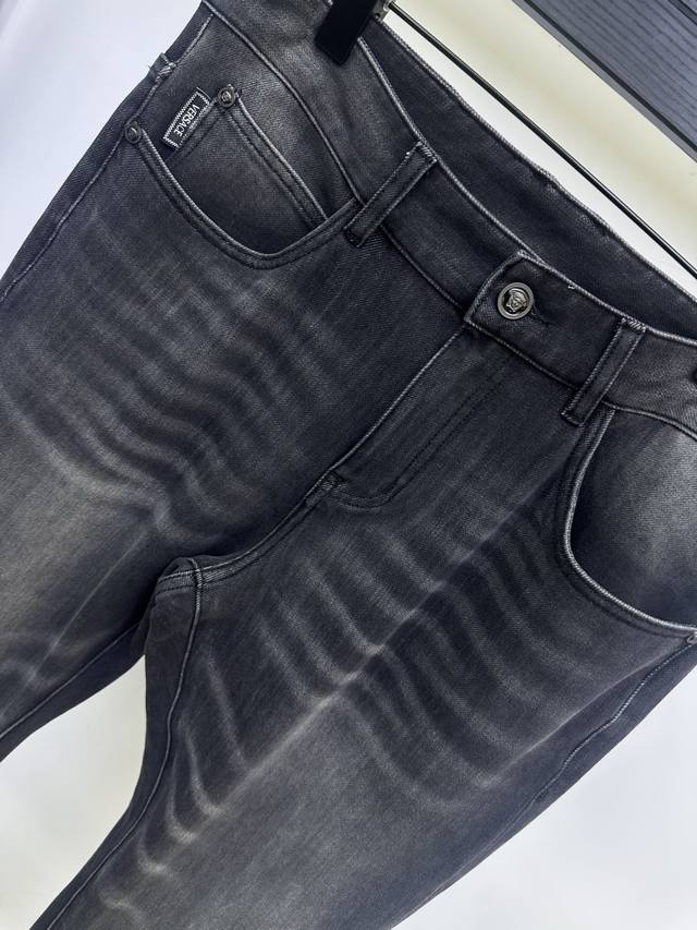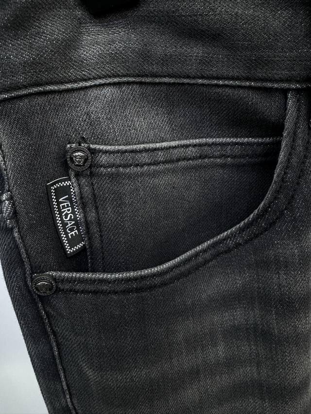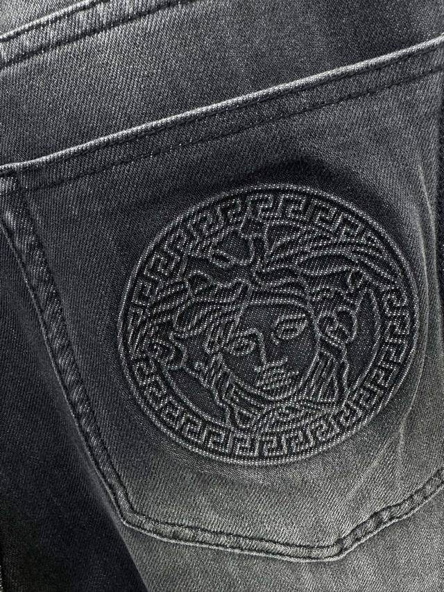 Versace Grey Denim 25Ss New Autumn/Winter Straight Cut Customized Counter-Same Color High-Grade Grey Fabric Soft, Skin-Friendly, Eco-Friendly, Colorfast, Washable, Whitening to Perfect Perfection The Upper Body Effect is Stylish Color: Grey Sizes 30.31.32.33.34.35.36.38