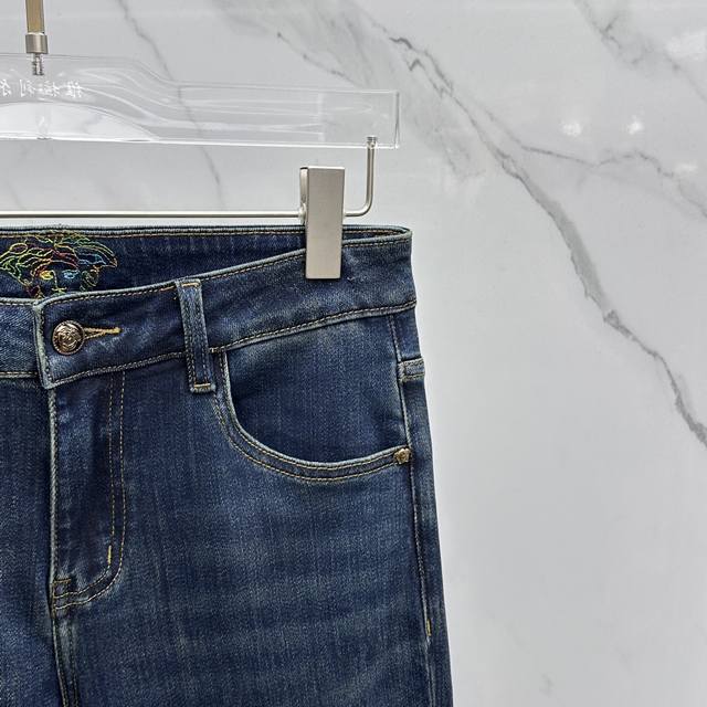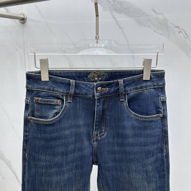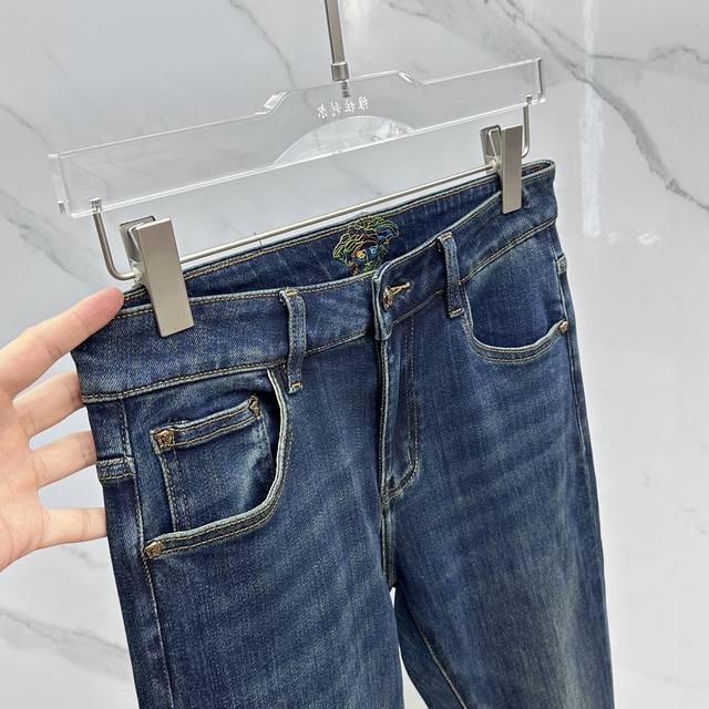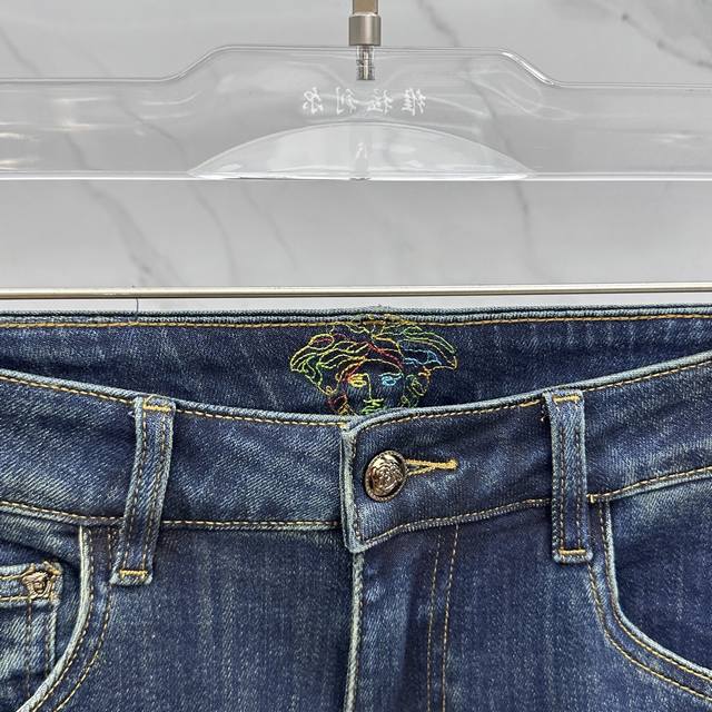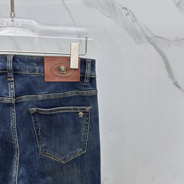 Versace high-end custom jeans, the latest 2025 early autumn jeans are available at the counter at the same time. Original custom replicas with custom hardware and accessories. Original quality imported solid-color stretch denim fabric, heavily washed, and fine workmanship and stitching. Perfect fit! Featured items with all three labels.