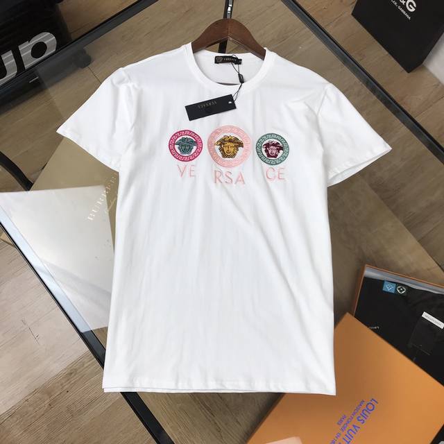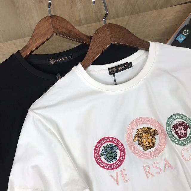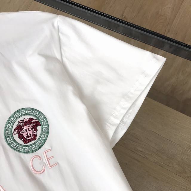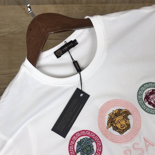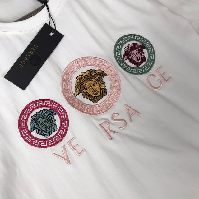 Versace Medusa head embroidery with vibrant colors, 20Ss G-net synced unisex sh