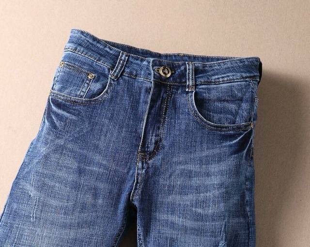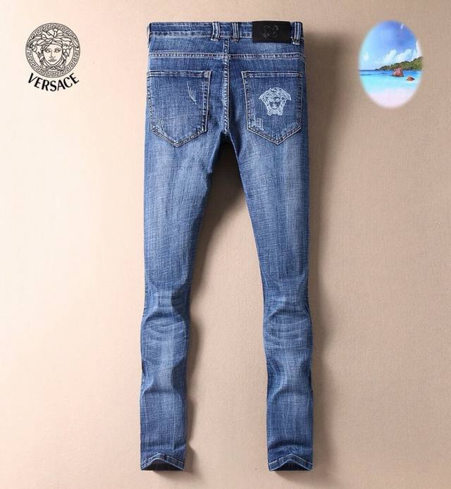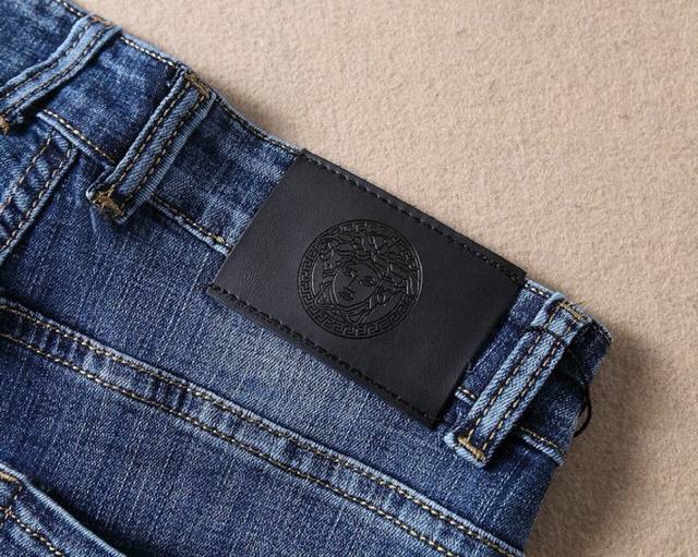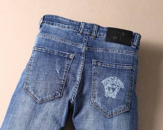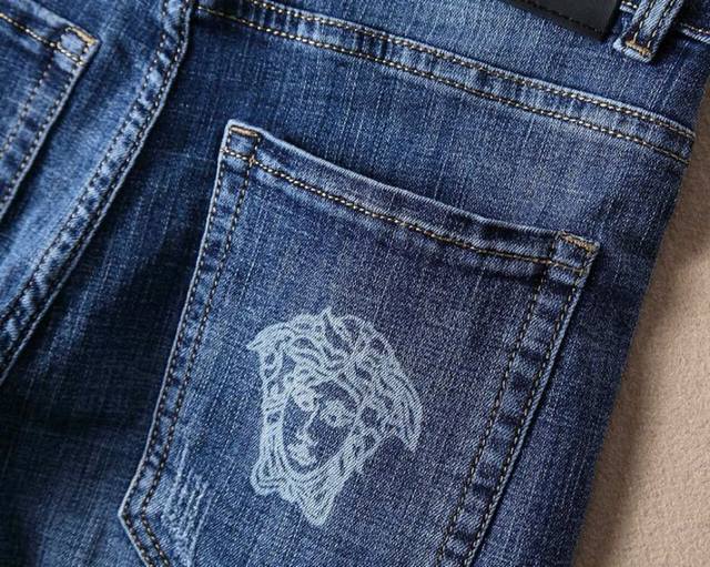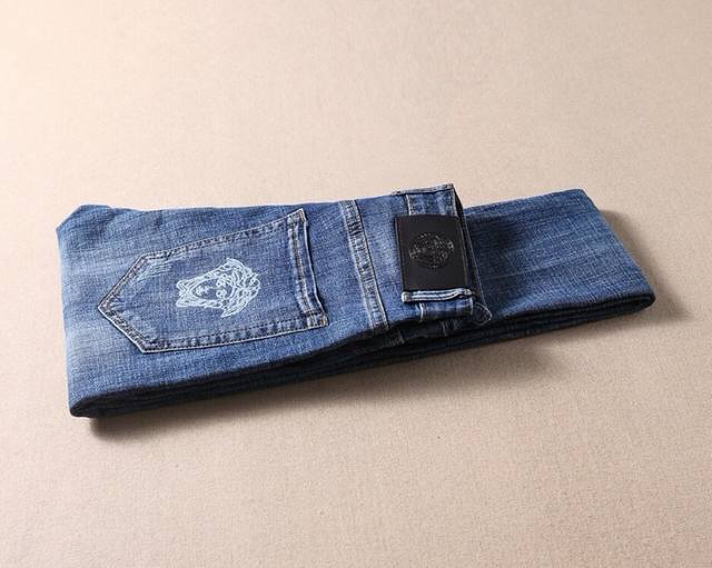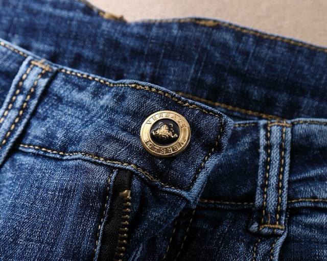 Versace men's new Korean-style denim pants, made from imported fabric that's st