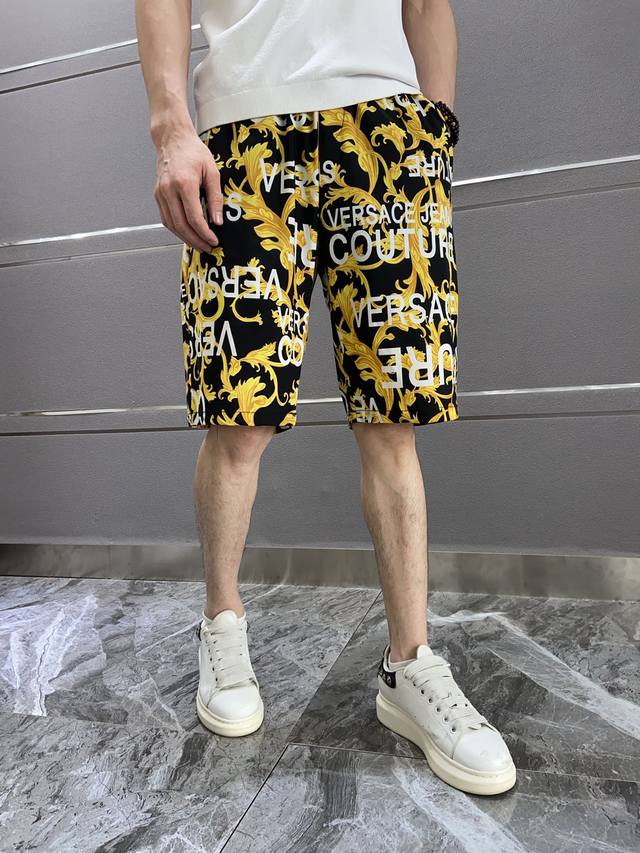 Versace new summer shorts beach pants top imported custom ice silk fabric breath