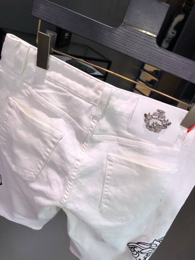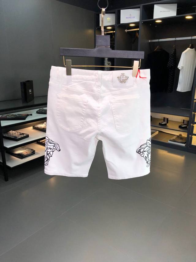 Versace: Newest spring and summer denim shorts. Custom-made hardware and accessories. Original quality imported denim fabric. Heavy washing and fine workmanship. Size: 28-36