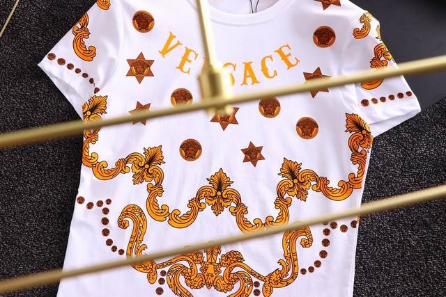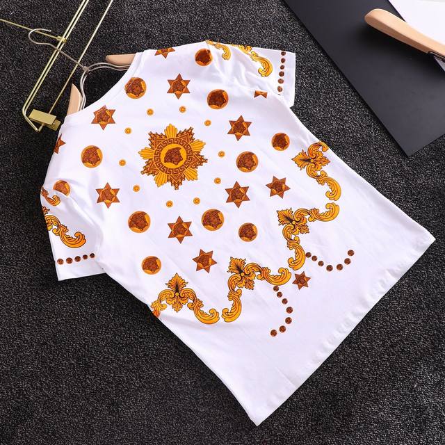 Versace summer official website new short-sleeved shirt, counter version, exquisite artistic high-end inkjet pattern design on the chest, made of selected high-quality European cotton fabric, original replica, fashionable Hong Kong style, comfortable and breathable upper body! Size: M-3Xl