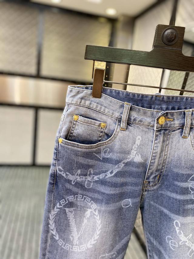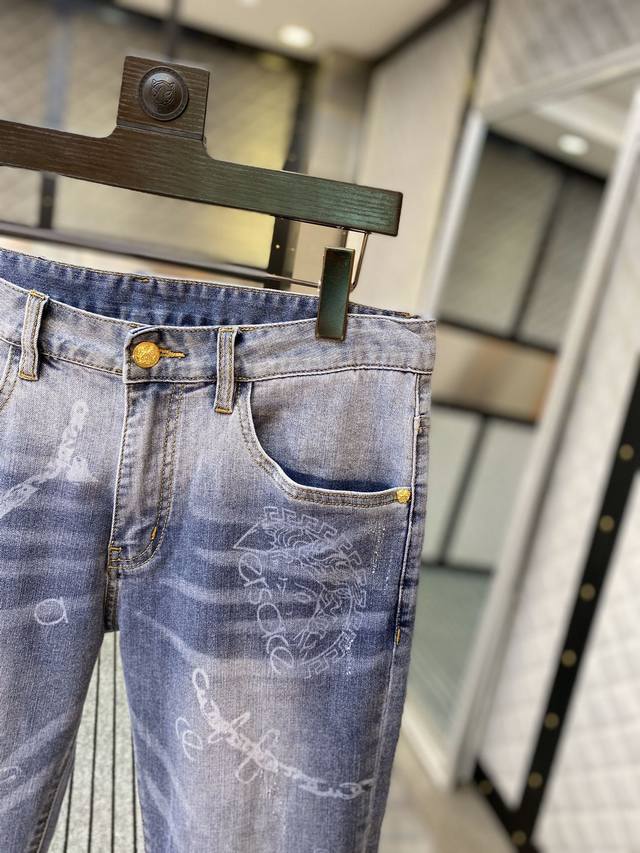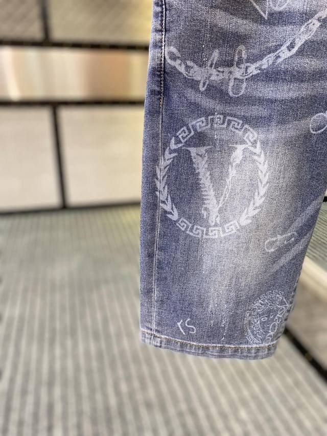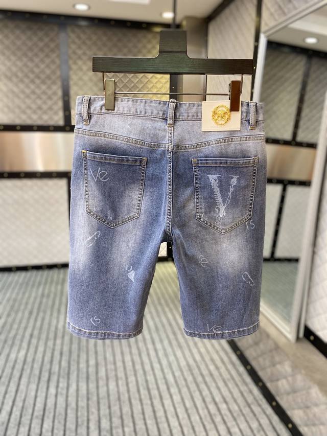 Versace: The latest denim shorts from the official website, featuring a high-tech, environmentally friendly washing process for a stylish and trendy look! Original hardware! Eye-catching 3D digital print featuring the Medusa head logo badge all over the shorts! Perfectly washed. Genuinely washed with meticulous workmanship! A style that's definitely trendy and has its own unique feel, perfect for trendy men! Looks incredibly handsome on the body! A must-have for spring and summer! Available sizes: 29-38