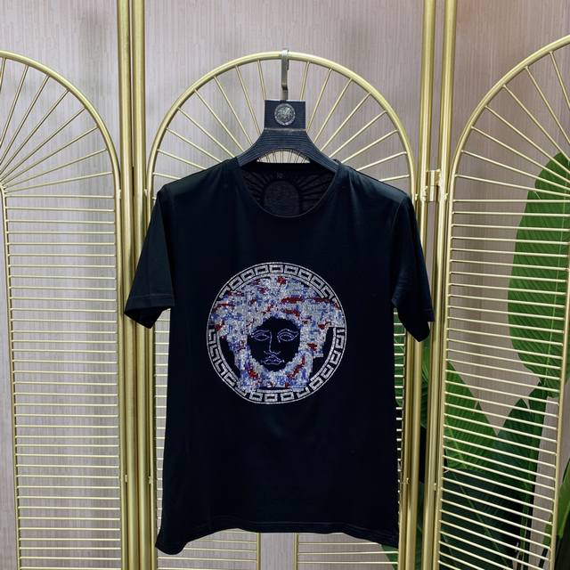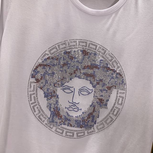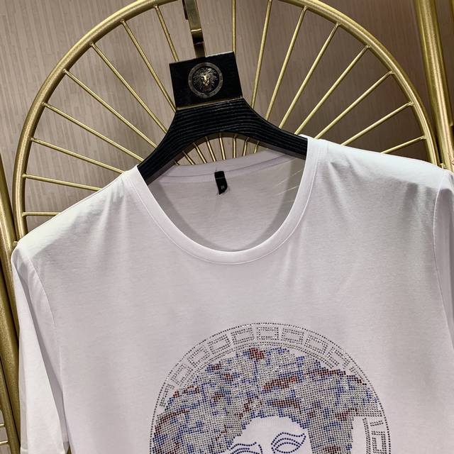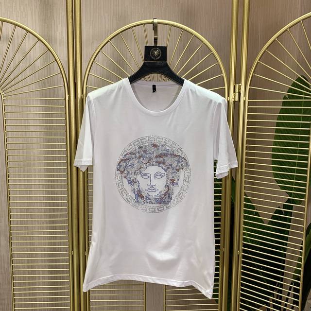 Versace. This year's latest hot-selling short-sleeved T-shirt. Available exclusively at Versace, featuring a pattern of Australian hot-stamped diamonds. The overall pattern is simple, elegant, and stylish, featuring imported hot-stamped diamonds from Australia. The classic luxury brand logo is featured on imported mercerized cotton. It feels comfortable and smooth, and is breathable and cool. It's definitely at the forefront of fashion! Sizes: S-6Xl. Size M wears 175cm, 135cm,